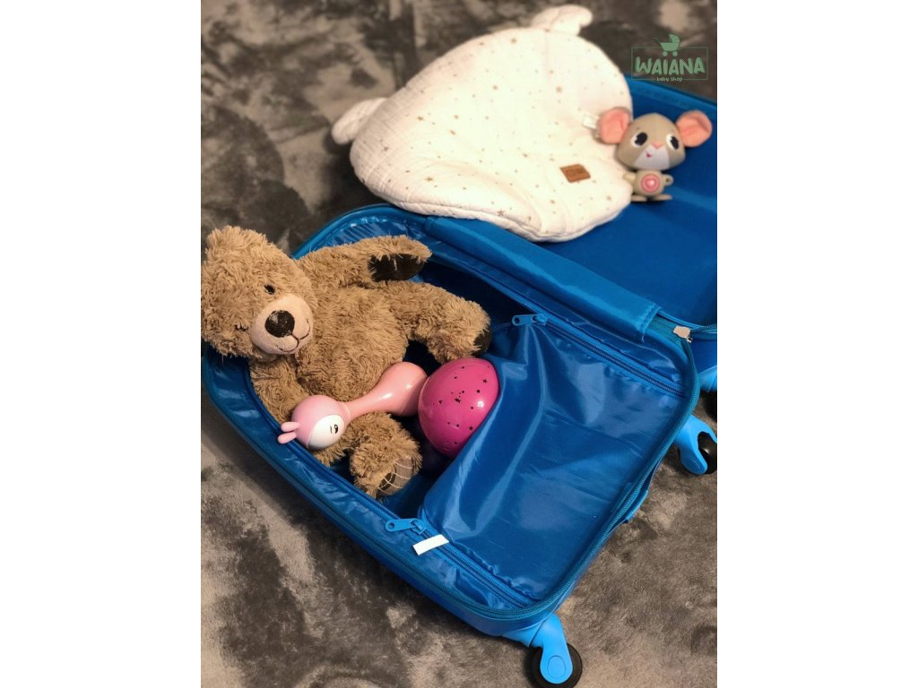 Vlastnosti výrobku.-vyrobený z odolného materiálu ABS, -potiahnutý vrstvou PC -dvojcestný zips -štyri kolesá otáčajúce sa okolo svojej osi -držadlo na prenášanie -výsuvná rúčka s dvojstupňovým nastavením, vďaka ktorému ľahko prispôsobíme jej dĺžku dieťaťu alebo rodičovi -odolný voči nárazom a preliačinám -vodeodolný -vnútri dve priestranné komory (jedna na zips, druhá s nastaviteľnými popruhmi)-kapacita 32l -ideálny ako darček Rozmery: 32 x 48 x 23 cm Údržba.Čistite vlhkou, mäkkou handričkou.Povrch kufra je chránený matnou ochrannou fóliou, pred použitím ju odstráňte z celého kufra. Technické údaje.-vek: 3+-rozmery balenia: D 42 cm x Š 22 cm x V 33 cm-modrá farba-rozmery (cm): šírka 35 x výška 52 x dĺžka / hĺbka 24-hmotnosť výrobku po vybalení: 1,1 kg-hmotnosť s obalom: 1,3 kg