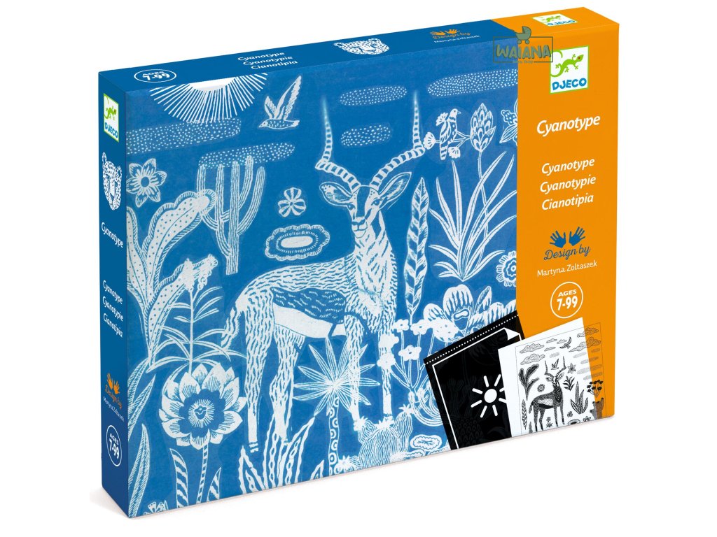 Noc na savane: Kyanotypová (fotocitlivá) sadaObjavte čaro svetla a tieňa pomocou fotocitlivej kreatívnej sady pre detiKreatívna sada Noc na savane: Kyanotypová (fotocitlivá) sada od značky Djeco prináša deťom magický zážitok z maľovania svetlom. Tento projekt je založený na fotografickej technike kyanotypii, pri ktorej deti vytvárajú originálne modré obrazy tým, že umiestnia nepriehľadné vzory na fotocitlivý papier a vystavia ho slnečnému svetlu. Po krátkom vystavení slnku sa na papieri objaví negatív, ktorý sa následne zafixuje spláchnutím v čistenej vode – výsledkom sú obrázky s nádherným modrým pozadím, ktoré pripomínajú nočnú savanu.S touto výtvarnou sadou si deti môžu pripraviť:4 umelecké obrazy inšpirované nočnou savanoukaždý obrázok vzniká fotografickou technikou kyanotypie, ktorá reaguje na slnečné svetloTáto kreatívna aktivita je skvelým spôsobom, ako spoznať mechanizmus fungovania svetla a tieňa, pochopiť starú fotografickú techniku hravou formou a vyrobiť jedinečné umelecké diela, ktoré si deti môžu vystaviť alebo darovať.Obsah balenia4 laserom vyrezané rámy8 listov fotocitlivého papiera (21 × 28 cm)127 vzorov tlačených na acetáte1 plexisklová doskailustrovaný návod krok za krokomČo si deti pri tvorení rozvíjajúkreativitu a umelecké cítenie pri tvorbe originálnych obrazovpochopenie svetla a tieňa, čo je základ kreatívnej fotografietrpezlivosť a sústredenie pri práci s postupom krok za krokomlogické a priestorové myslenie pri umiestňovaní vzorovzmysel pre estetiku a farebné vnímanie pri hotových dielachPrečo si vybrať túto kreatívnu sadu od Djecodeti sa učia prostredníctvom zážitkužiadne komplikované chemikálie – všetko funguje pomocou slnečného svetla a vodyvýsledné obrazy sú originálne a jedinečné pre každé dieťavhodné pre deti od 7 rokov a staršie aj dospelých, ktorí chcú tvoriť spolu s deťmikvalitný materiál s ekologickým FSC® papierom