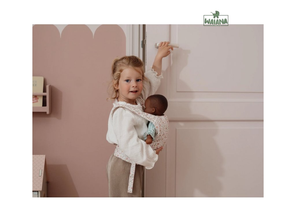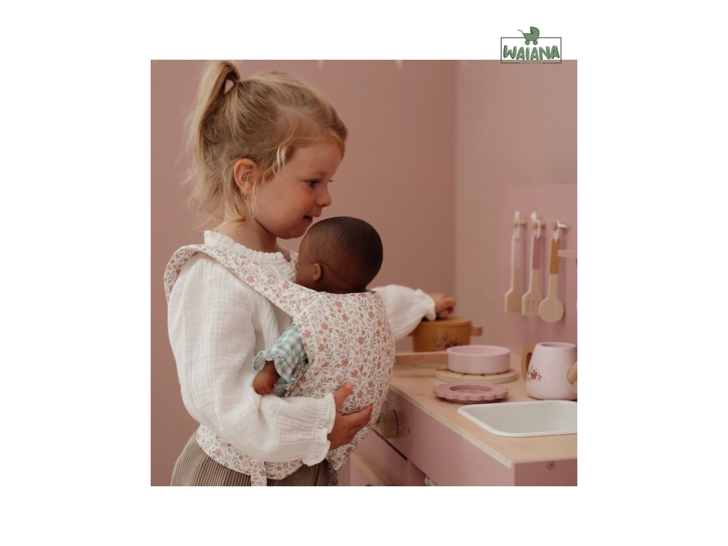 S nosičom pre bábiky Little Dutch si deti môžu vziať svoju obľúbenú bábiku alebo plyšového kamaráta kamkoľvek so sebou. Vďaka mäkkým polstrovaným ramenným popruhom a pevnému bedrovému pásu sedí bábika bezpečne a pohodlne. Nosič umožňuje nosenie bábiky ako čelom k sebe, tak čelom dopredu – rovnako ako pri skutočnom nosiči. Hra podporuje rozvoj fantázie, empatie i sociálnych zručností.