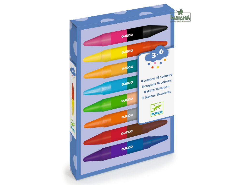 Obojstranné pastelky 8 ks/16 farieb Dvojnásobná paleta farieb v kompaktnom baleníObojstranné pastelky sú praktická a kreatívna pomôcka pre deti, ktoré rady kreslia, vyfarbujú a experimentujú s farbami. Každá pastelka má dve rôzne farby, vďaka čomu ponúka balenie až 16 odtieňov v kompaktnom a ľahko prenosnom formáte.Pastelky majú kvalitnú farebnú stopu, dobre sa držia v ruke a umožňujú plynulé kreslenie aj vyfarbovanie väčších plôch. Sú ideálne na doma, do školy aj na cesty a podporujú rozvoj kreativity, jemnej motoriky a cit pre farby.Pre koho sú vhodné: odporúčaný vek: od 3 rokov pre deti, ktoré rady kreslia, maľujú a vyfarbujú ideálne ako základná výtvarná pomôcka vhodné na doma, do škôlky, školy aj na cestyHlavné benefity 8 obojstranných pasteliek = 16 rôznych farieb kompaktné balenie – viac farieb v menšom priestore kvalitná farebná stopa a plynulé kreslenie podporujú kreativitu, jemnú motoriku a cit pre farby kvalitné spracovanie typické pre značku DjecoObsah balenia 8× obojstranná pastelka (16 farieb)