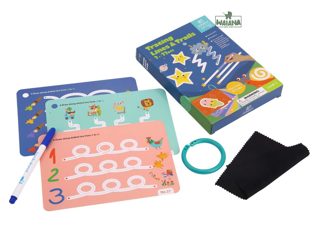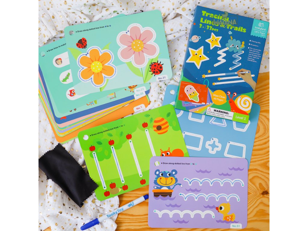 Obťahovanie Level 1 Cestičky 60 kariet s fixkouKartičky sú umývateľnéKreatívna sada Obťahovanie pre deti od Tookyland obsahuje 30 obojstranných kartičiek so 60 rôznymi úlohami. Deti si tak ľahko vyberú, na ktorú úlohu sa práve vrhnú. Niektoré aktivity sú jednoduchšie, deti obťahujú jednoduché čiary. Inde už musí zapojiť vlastnú kreativitu a hlavu pri spájaní bodiek. Kartičky sú skvelé na cesty. Je možné ich spojiť krúžkom, ktorý je súčasťou sady. Nechýba ani 1 zmývateľná fixka a 1 handrička na zotretie kartičiek.Deti sa zabavia a učiaSada Obťahovanie pre deti Level 1 podporuje deti v ich záujme o kreslenie, učí ich poznávať tvary, pracovať podľa predlohy. Vďaka práci s kartami si deti zlepšujú svoju grafomotoriku. Kreatívne sady pre deti od Tookyland sú veľmi nápadité a vyrobené z kvalitných, bezpečných materiálov. Skvelá kreatívna súprava pre deti!
