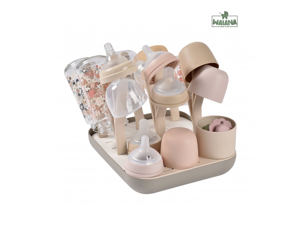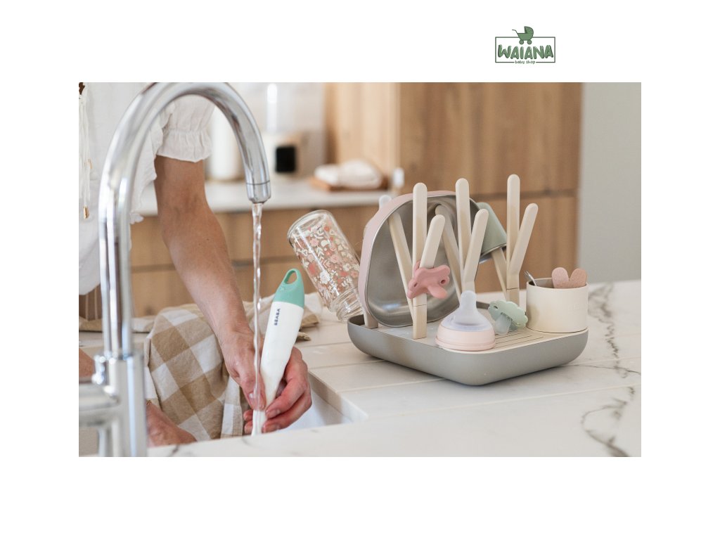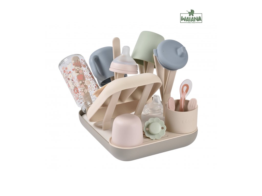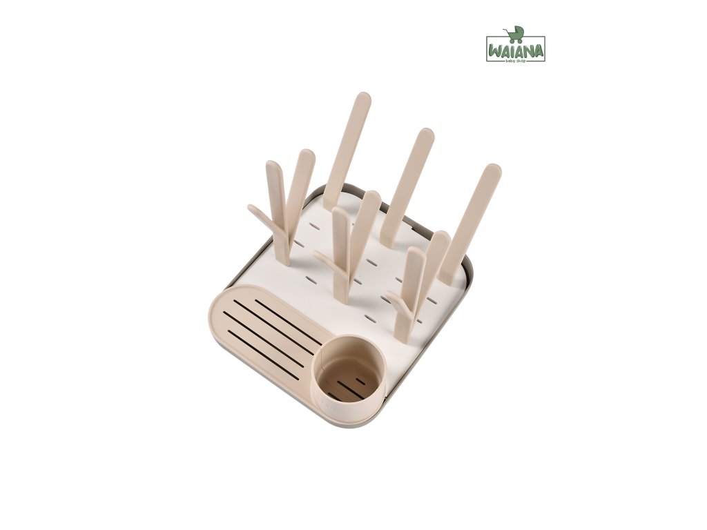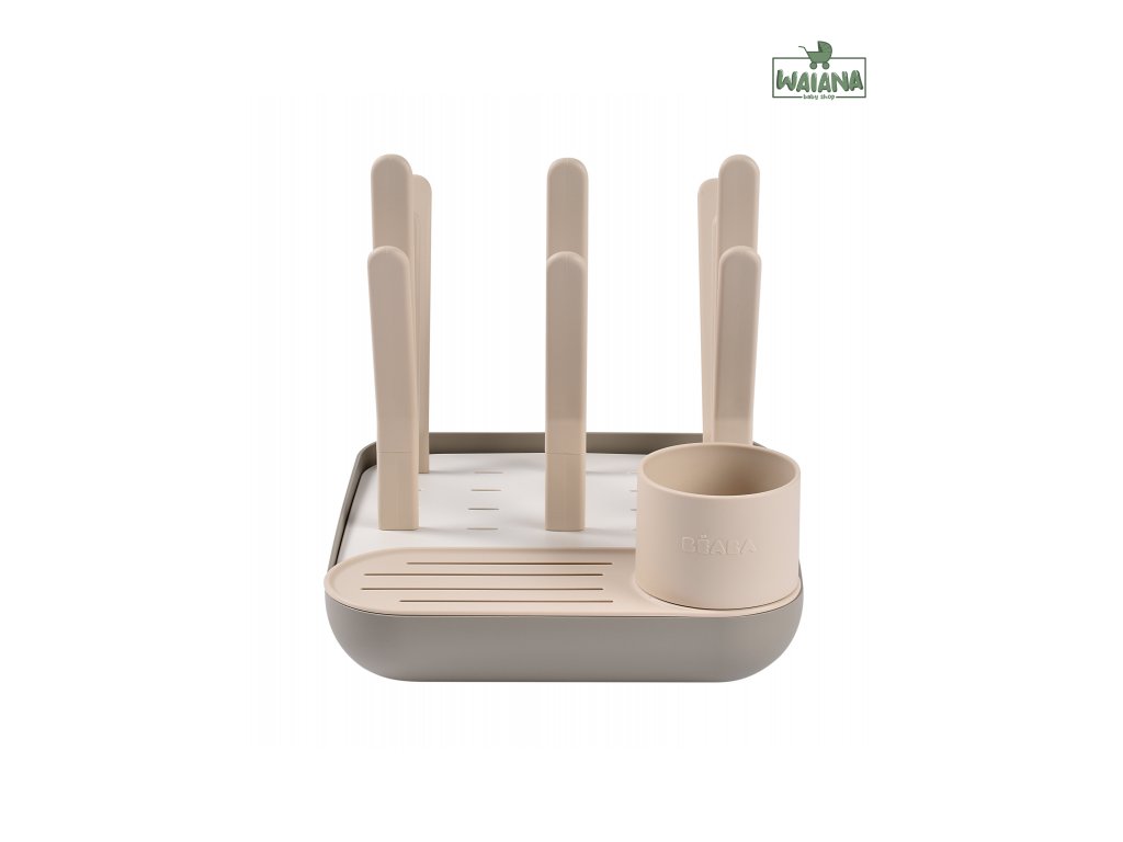 Variabilný stojan Beaba na sušenie dojčenských fliaš, hrnčekov, misiek, lyžičiek a doplnkov. Stojan má vyberateľné držiaky a umožňuje tak prispôsobiť jeho usporiadanie podľa typu a veľkosti riadu, ktorý na stojan potrebujete umiestniť. Odnímateľná základňa uľahčuje údržbu stojana a zároveň slúži na uloženie jednotlivých súčastí stojana, keď ho práve nepoužívate.