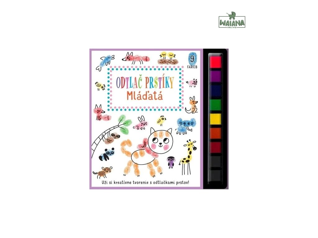 Odtlač prstíky - MláďatáDeti maľujú pomocou odtlačkov prstovOdklop viečko a vytvor krásne obrázky pomocou farebných atramentových vankúšikov v tejto kreatívnej knihe plnej úloh.Kniha podporuje kreativitu a zručnosťTáto kreatívna kniha obsahuje mnoho nápadov a návodov na vytvorenie zábavných obrázkov pomocou farebných odtlačkov prstíkov. Na každej stránke so zvieratami z celého sveta sa môžeš umelecky vyjadriť a obrázky zaplniť aj podľa svojej vlastnej fantázie. Hotové odtlačky môžeš dokončiť pomocou fixky a pridať im drobné, nápadité detaily. Rôzne prsty robia rôzne odtlačky, tak na nič nečakaj a pusť sa do tvorenia!