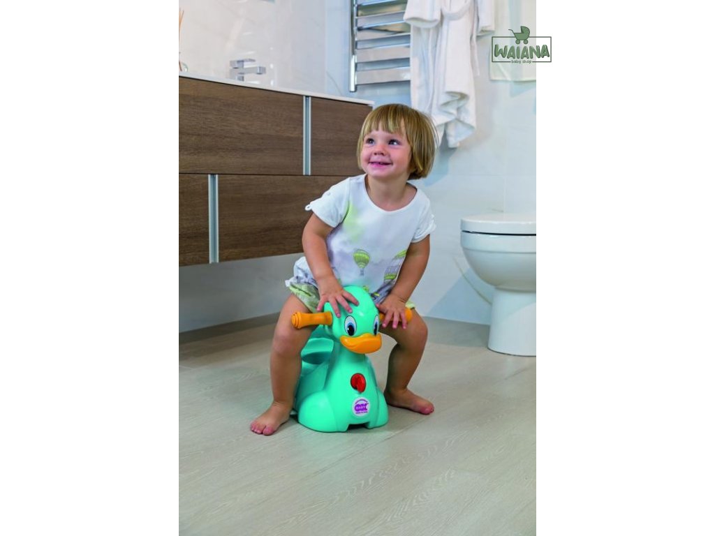 Nočník Quack ve tvaru kačera dodáván spolu s krytem. Po stisknutí zobáku píská, rukojeti jsou měkké a příjemně se drží. Je možné odebrat přední část a získat tak samostatný nočník. Rozměry produktu (v x š x d): 33,5 x 42 x 29 cm