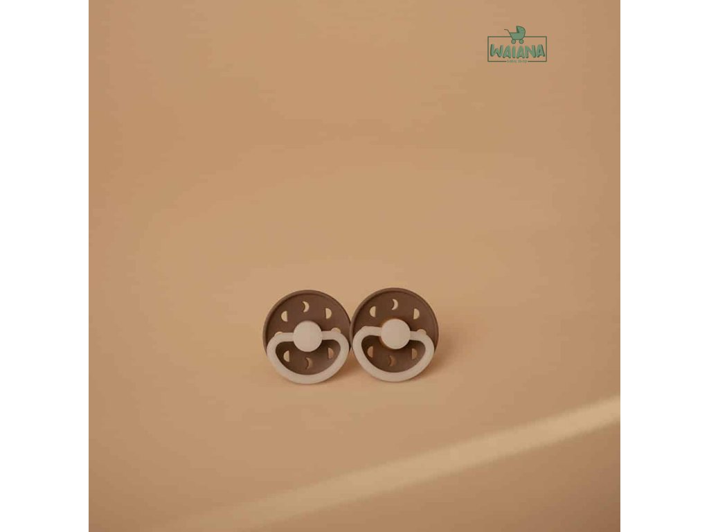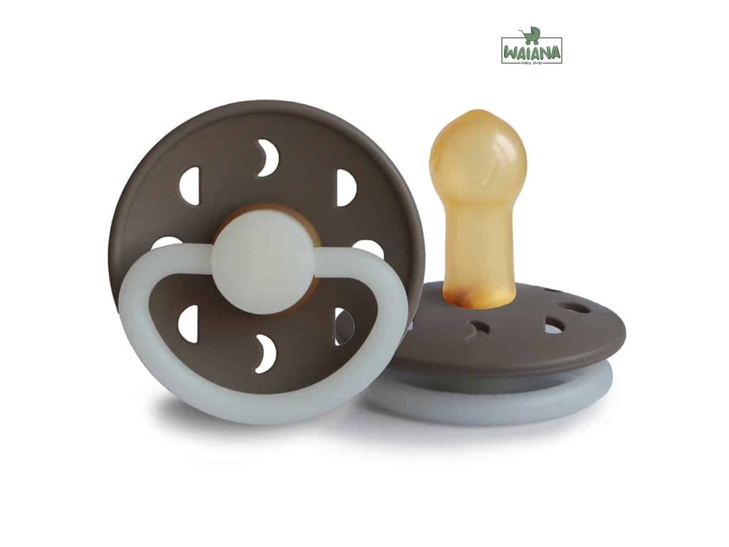 FRIGG Moon Phase je cumlík inšpirovaný Mesiacom v pohybe. Posunujúce sa fázy mesiaca sa odrážajú na štíte cumlíka a fungujú ako vzduchové otvory na vetranie citlivej detskej pokožky. Inšpirácia Moon Phase pokračuje v rukoväti v tvare polmesiaca.