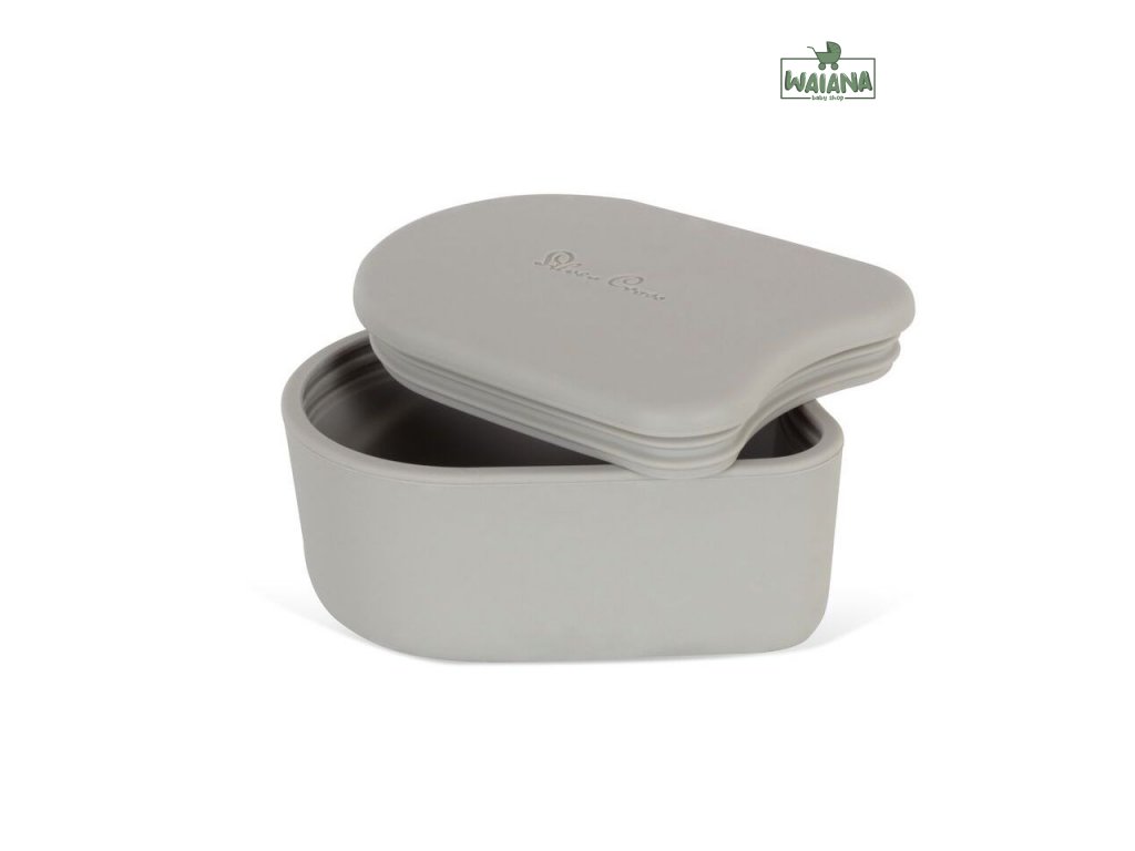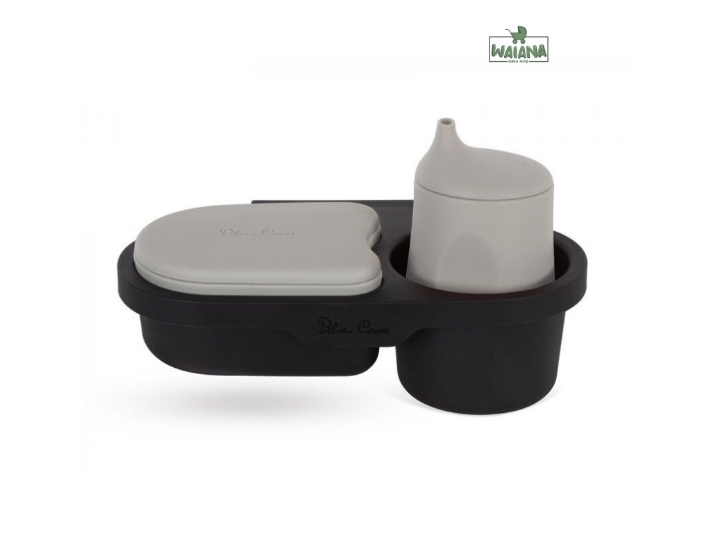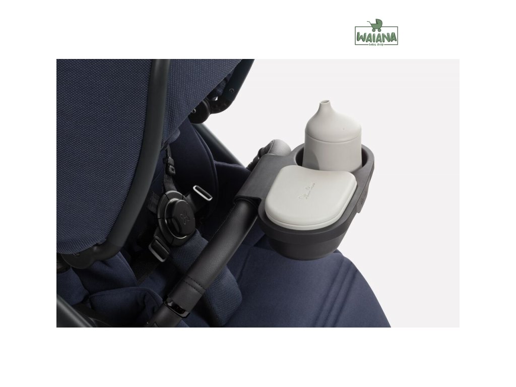 Originálny pultík na desiatu je určený na pripevnenie na madlo kočíka pred dieťa. Súčasťou pultíka je vyberateľný silikónový kelímok s náustkom a krabička na jedlo s viečkom. Silikónový mäkký materiál je bezpečný a príjemný pri používaní. Je odolný vysokým aj nízkym teplotám a nie je náchylný na vytváranie škvŕn od farebných potravín. Keď dieťaťu spadne na zem, nehrozí jeho rozbitie.