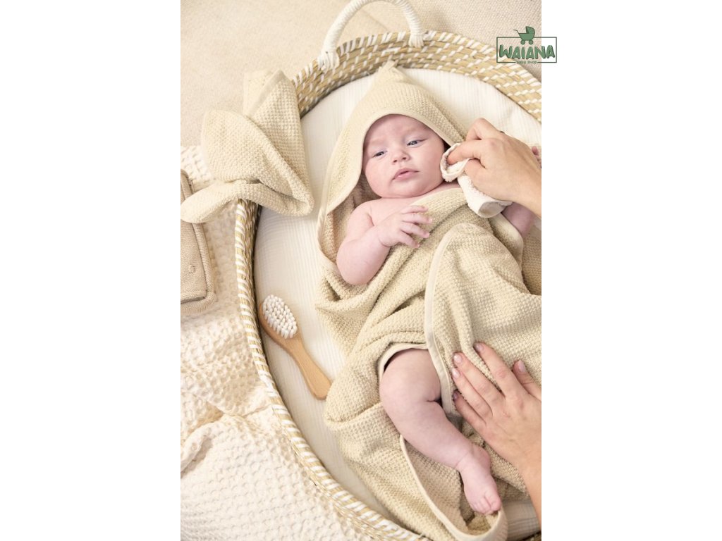 Osuška s kapucí z měkké froté bavlny.Velmi kvalitní materiál, který dobře absorbuje vlhkost.Vyrobeno z 50 % bavlny a 50 % recyklované bavlny. Látka má příjemnou texturu.