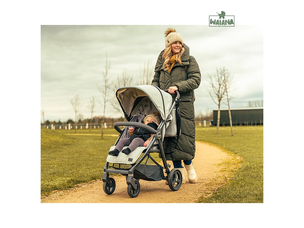 Ľahký dizajn: S hmotnosťou iba 8,5 kg (hmotnosť rámu s kolesami) je manipulácia s kočíkom jednoduchá.Veľký, ľahko prístupný nákupný košík: Poskytuje dostatok priestoru na uloženie všetkých potrebných vecí a nákupov.Vrecko na pláštenku: Špeciálne vrecko na zadnej strane striešky pre pohodlné uloženie pláštenky (ktorá je súčasťou balenia) a drobných predmetov ako telefón, kľúče či peňaženka.Adaptívny cestovný systém: Sedadlo a kapucňa sa dajú odobrať, čo umožňuje namontovať prenosnú vaničku alebo autosedačku (vyžaduje adaptér, dostupné samostatne) a vytvoriť tak kompletný cestovný systém.Elegantný dizajn: Štýlový sivý rám, logo Oyster a rukoväť s čelenkou potiahnutou ekokožou s ozdobnou perforáciou dodávajú kočíku moderný a elegantný vzhľad.