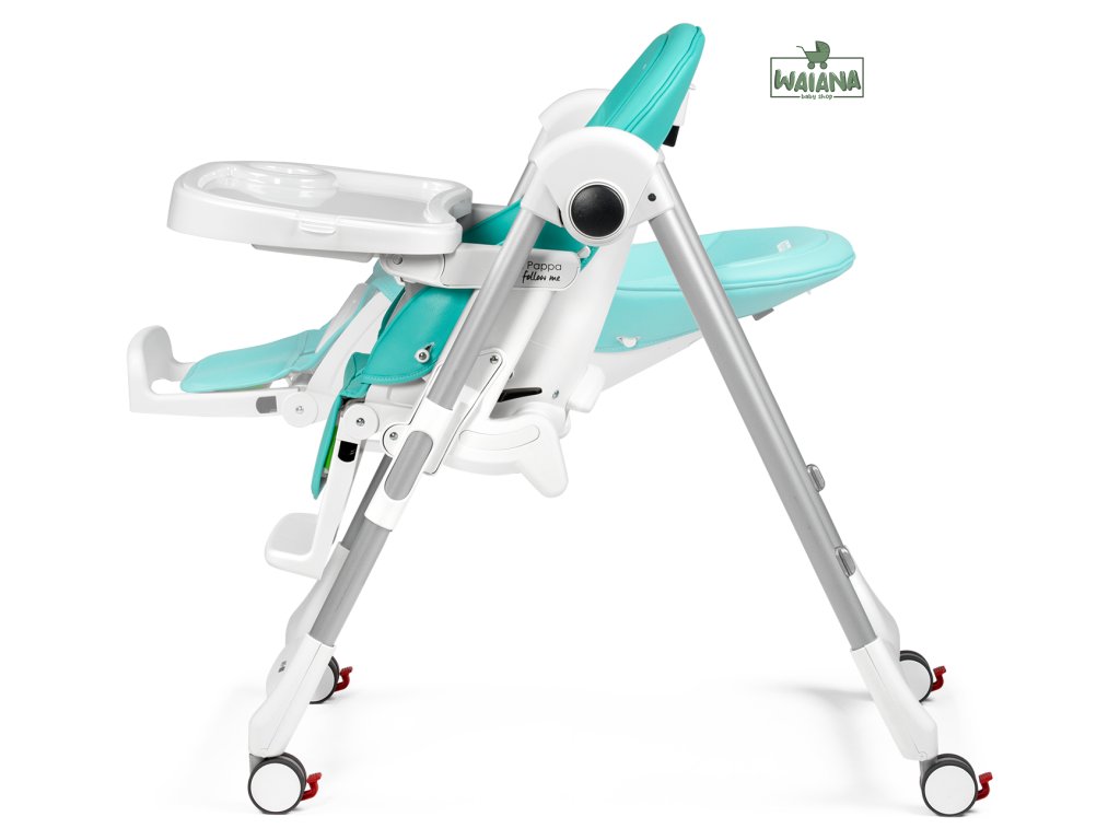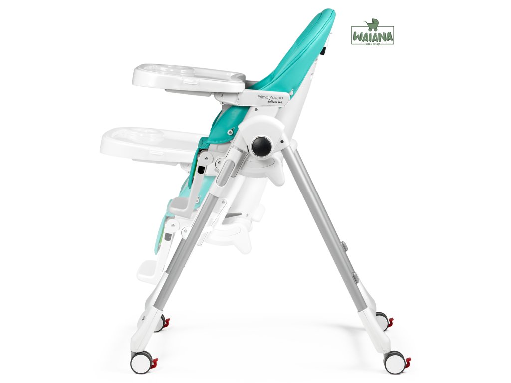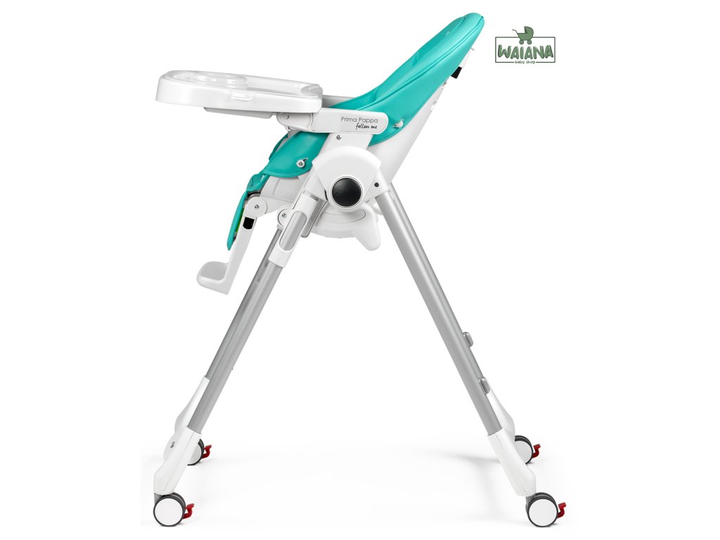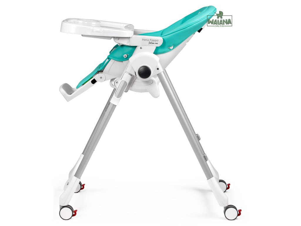 Ultralehká a multifunkční židlička Prima Pappa Follow Me roste s Vaším dítětem od narození až do 3 let: během prvních několika měsíců může být židlička Prima Pappa Follow Me používána jako pohodlné, relaxační naklápěcí lehátko. Od 6 měsíců věku dítěte poslouží jako jídelní židlička pro krmení a hraní a později, bez polohovacího tácku, k sezení u stolu společně s dospělými. Díky 4 kolečkům lze židličku snadno přemisťovat po vaší domácnosti. Celou židličku lze výškově nastavit do 7 pozic, její opěrka nohou je nastavitelná do 3 pozic a zádová opěrka do 5 pozic (více než 150 °). Dvojitý polohovatelný a odnímatelný tácek s držákem na láhev je vhodný i do myčky na nádobí a ve spodní části je opatřený bezpečnostní přepážkou, která zabraňuje vyklouznutí dítěte z židličky. Ve složeném stavu stojí samostatně a zabírá málo místa.