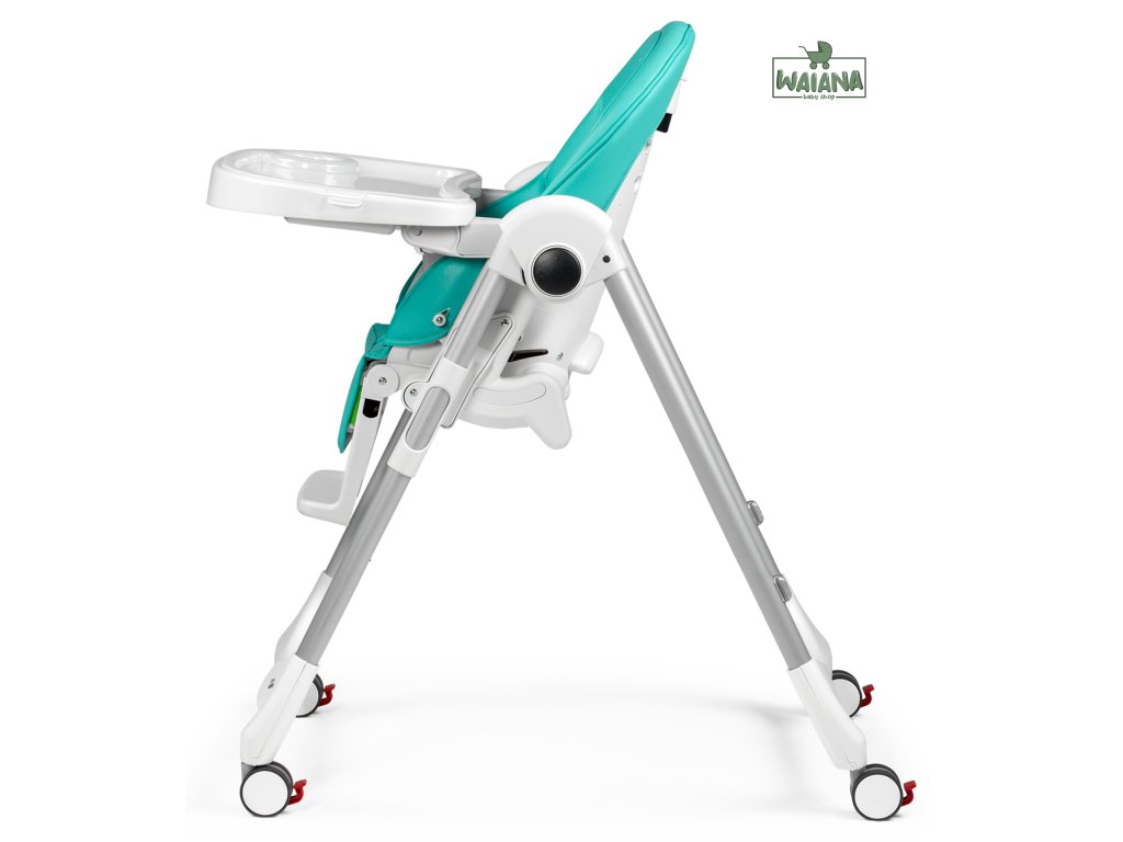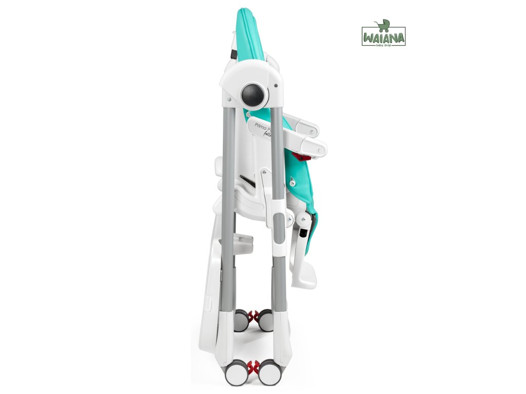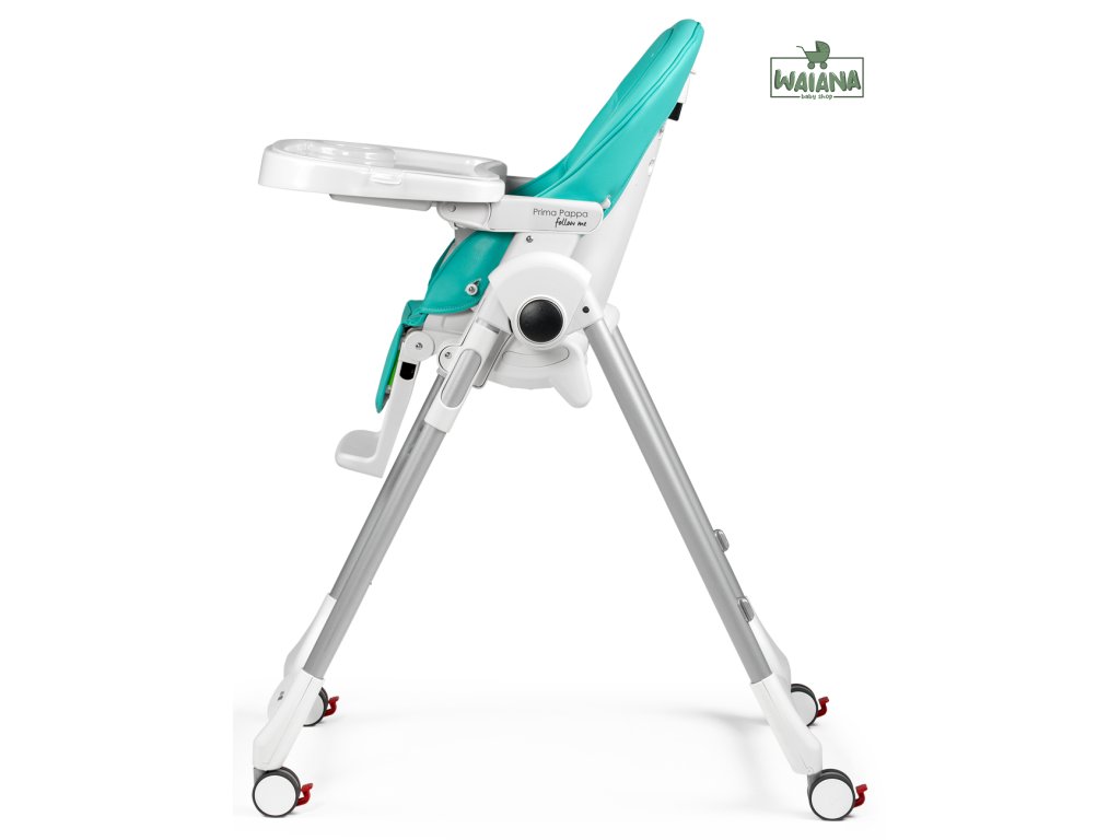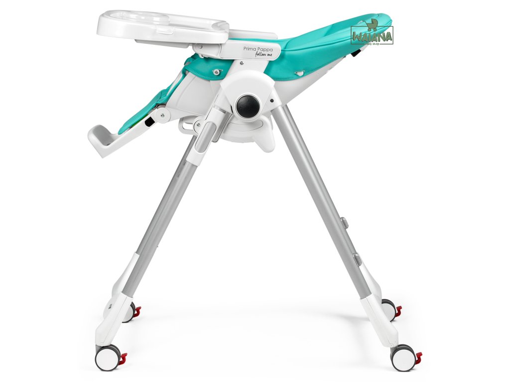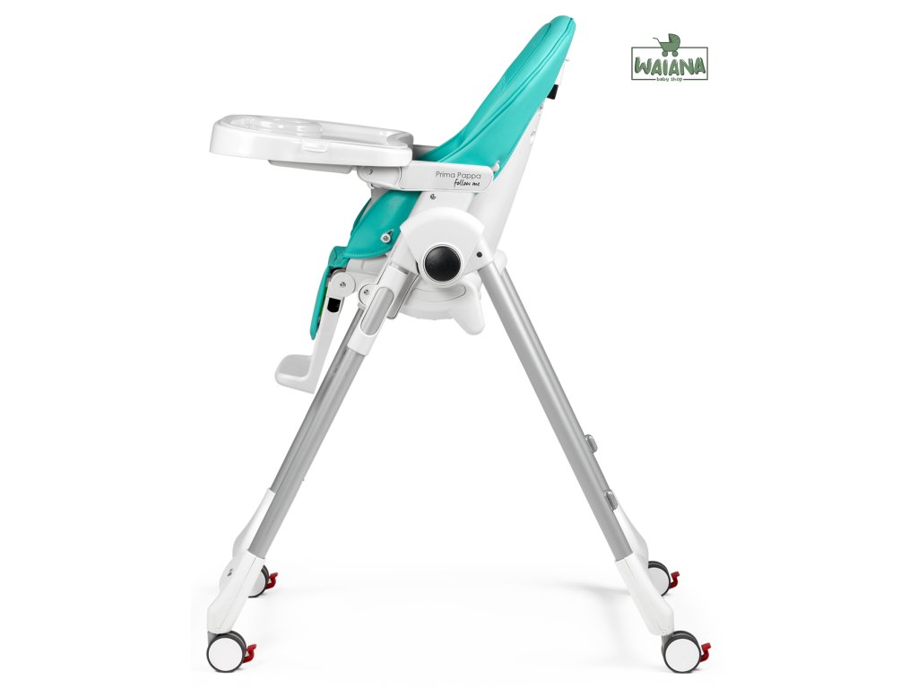 Ultralehká a multifunkční židlička Prima Pappa Follow Me roste s Vaším dítětem od narození až do 3 let: během prvních několika měsíců může být židlička Prima Pappa Follow Me používána jako pohodlné, relaxační naklápěcí lehátko. Od 6 měsíců věku dítěte poslouží jako jídelní židlička pro krmení a hraní a později, bez polohovacího tácku, k sezení u stolu společně s dospělými. Díky 4 kolečkům lze židličku snadno přemisťovat po vaší domácnosti. Celou židličku lze výškově nastavit do 7 pozic, její opěrka nohou je nastavitelná do 3 pozic a zádová opěrka do 5 pozic (více než 150 °). Dvojitý polohovatelný a odnímatelný tácek s držákem na láhev je vhodný i do myčky na nádobí a ve spodní části je opatřený bezpečnostní přepážkou, která zabraňuje vyklouznutí dítěte z židličky. Ve složeném stavu stojí samostatně a zabírá málo místa.