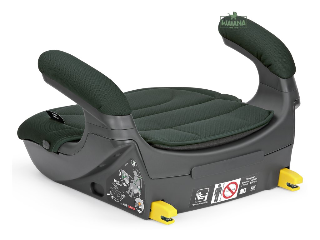 2) díky integrované i-Size Base lze společně s 3bodovým bezpečnostním pásem použít také ISOFIX konektory a připojit tak podsedák přímo ke kotevním bodům ve vozidle. Podsedák je tak vždy správně nainstalovaný a dokonale drží i v prudkých zatáčkách.