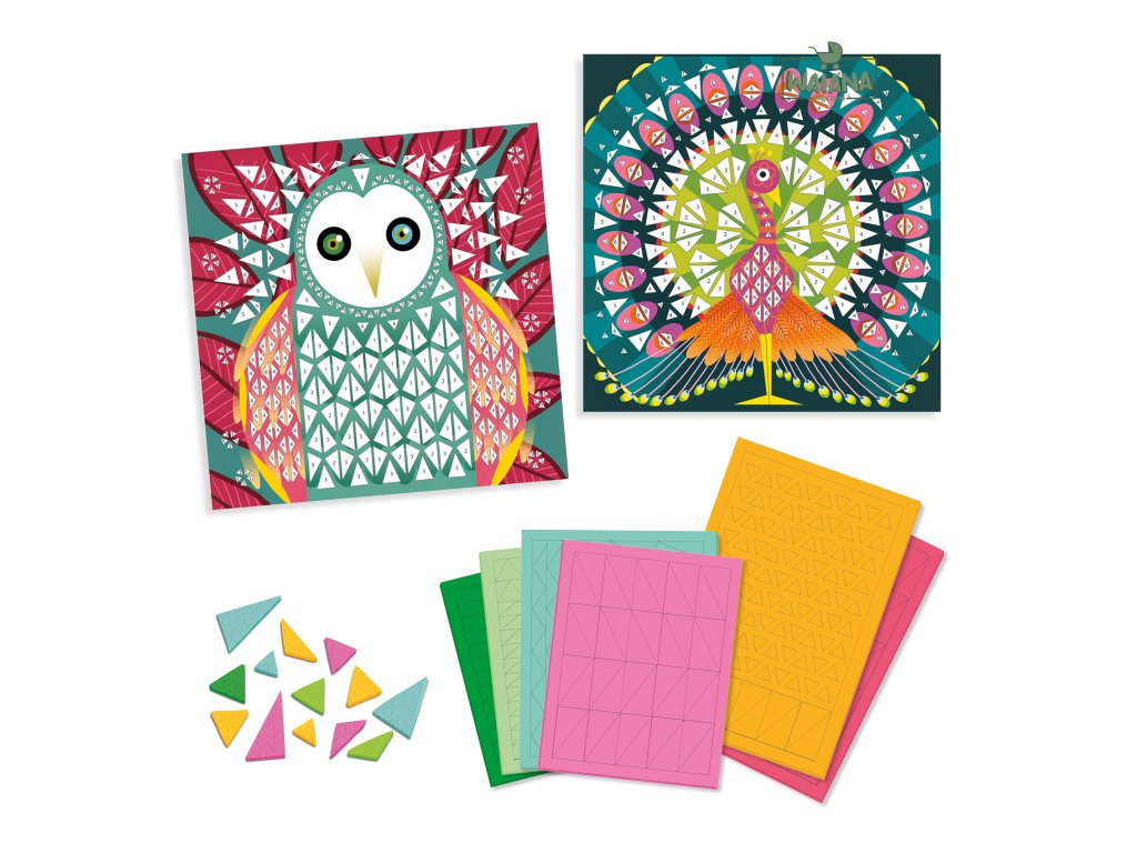 Penová mozaika Coco Tvorba podľa čísiel Mozaika ako vitráž: nalep farebné penové trojuholníky podľa čísiel a vzniknú 2 nádherné vtáčie obrázkyPenová mozaika Coco – tvorba podľa čísiel je kreatívna sada, v ktorej deti vytvoria 2 mozaikové obrázky pomocou samolepiacich penových trojuholníkov.Stačí postupovať podľa číselného a farebného kódu na predlohách – bez lepidla, bez farieb a bez neporiadku.Hotové obrázky pôsobia ako farebná vitráž: na pozadí sú jemné oblú tvary a deti ich postupne „vyskladajú“ ostrými mozaikovými dielikmi.Výsledkom sú 2 vtáčie motívy, ktoré sa dajú vystaviť ako malý umelecký projekt.Rýchly prehľad odporúčaný vek: 7 – 12 rokov rozvíja: jemnú motoriku, trpezlivosť, sústredenie, vnímanie farieb v balení: 2 predlohy 21 × 21 cm, 7 hárkov penových samolepiek, návodPrečo si ju deti zamilujú tvorenie bez lepidla – dieliky fungujú ako samolepky jasný postup podľa čísiel – deti vidia pokrok krok za krokom originálne trojuholníkové dieliky robia výsledok extra „mozaikový“ krásne hotové obrázky – páv a sova na vystavenieAko to funguje Vyber si obrázok a nájdi políčko s číslom. Podľa návodu vyber správnu farbu a tvar trojuholníka. Odlep dielik a nalep ho na označené miesto – postupuj až do vyplnenia celého motívu.Obsah balenia 2× ilustrovaná predloha (kartón, 21 × 21 cm) 7× hárok samolepiacich penových dielikov (trojuholníky v rôznych veľkostiach) 1× obrázkový návod krok za krokomTechnické parametre materiál: kartón/papier, samolepiaca pena rozmer obrázkov: 21 × 21 cm rozmery balenia: cca 22 × 23 × 1 cm