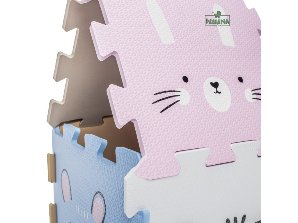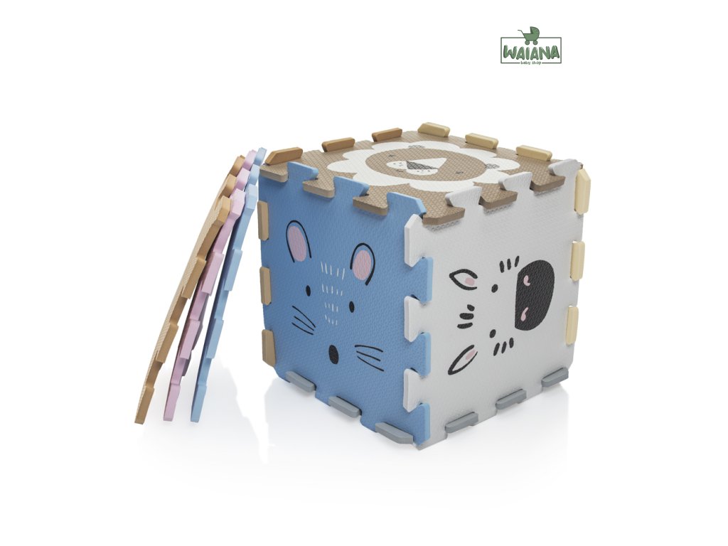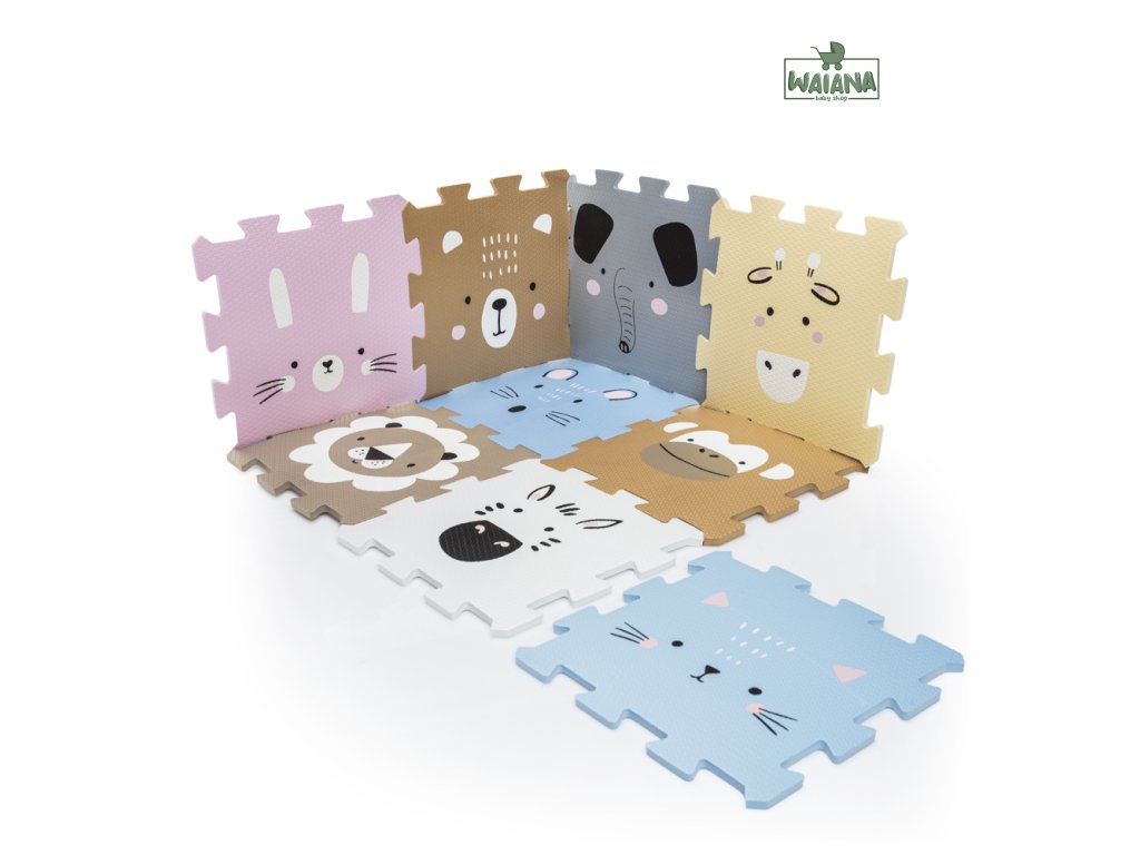Penové puzzle je vyrobené z kvalitnej EVA peny. Slúži nielen ako podložka, ktorá zabezpečí pohodlie vďaka izolácii od chladu, ale aj ako praktická pomôcka pre prvé mesiace bábätka, keď poskytuje mäkkú oporu pri pásení koníčka alebo pri prvom lození.