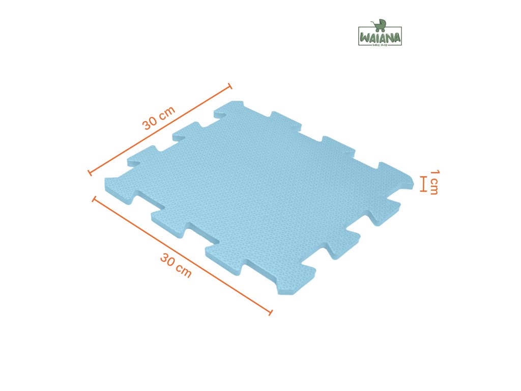 Jednotlivé dlaždice 30 × 30 cm (9 ks) do seba perfektne zapadajú. Podložka je vhodná pre deti od narodenia, vyrobená z nezávadného a príjemného materiálu.