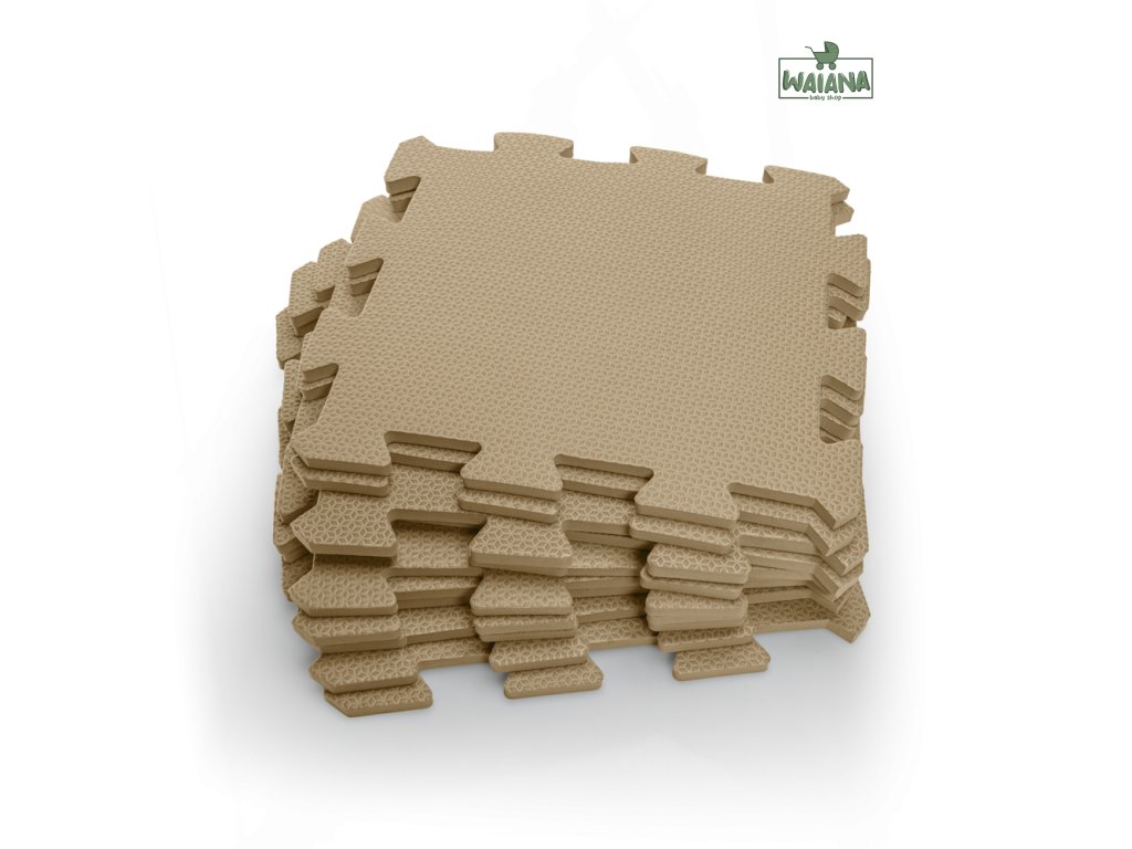 Jednotlivé dlaždice 30 × 30 cm (9 ks) do seba perfektne zapadajú. Podložka je vhodná pre deti od narodenia, vyrobená z nezávadného a príjemného materiálu.