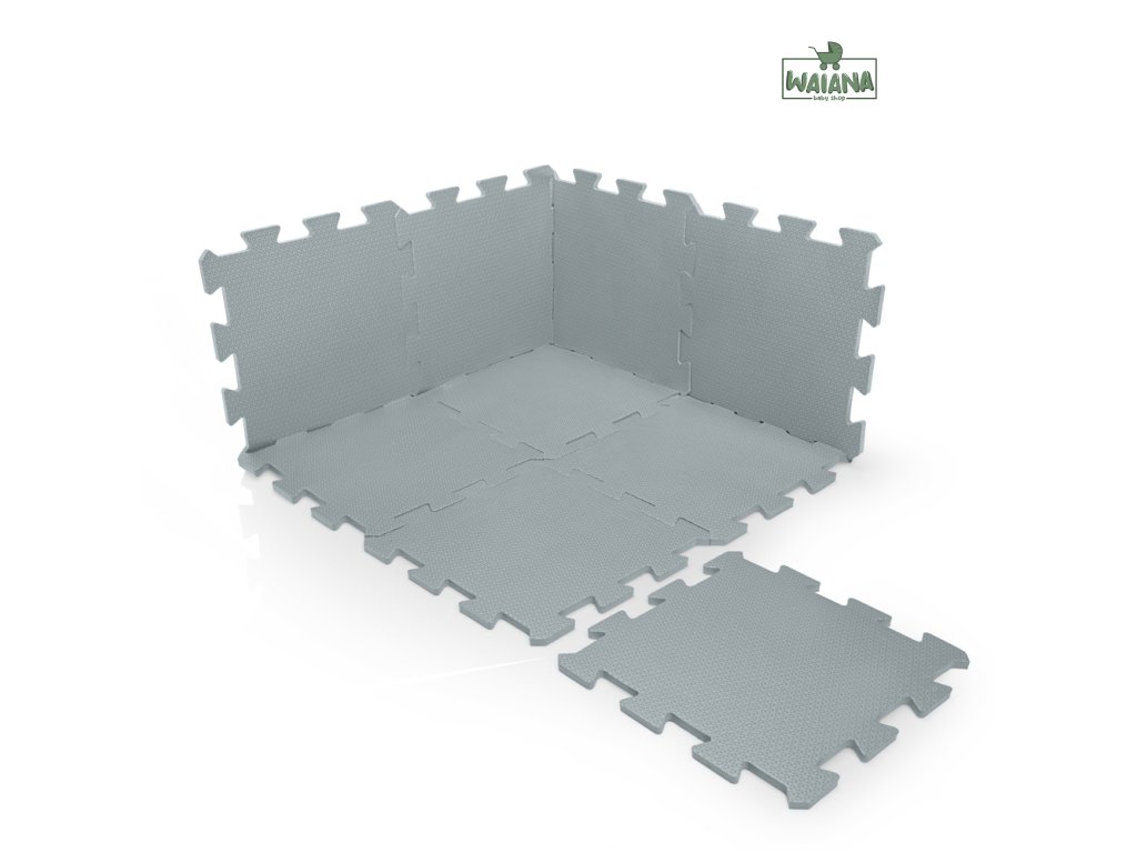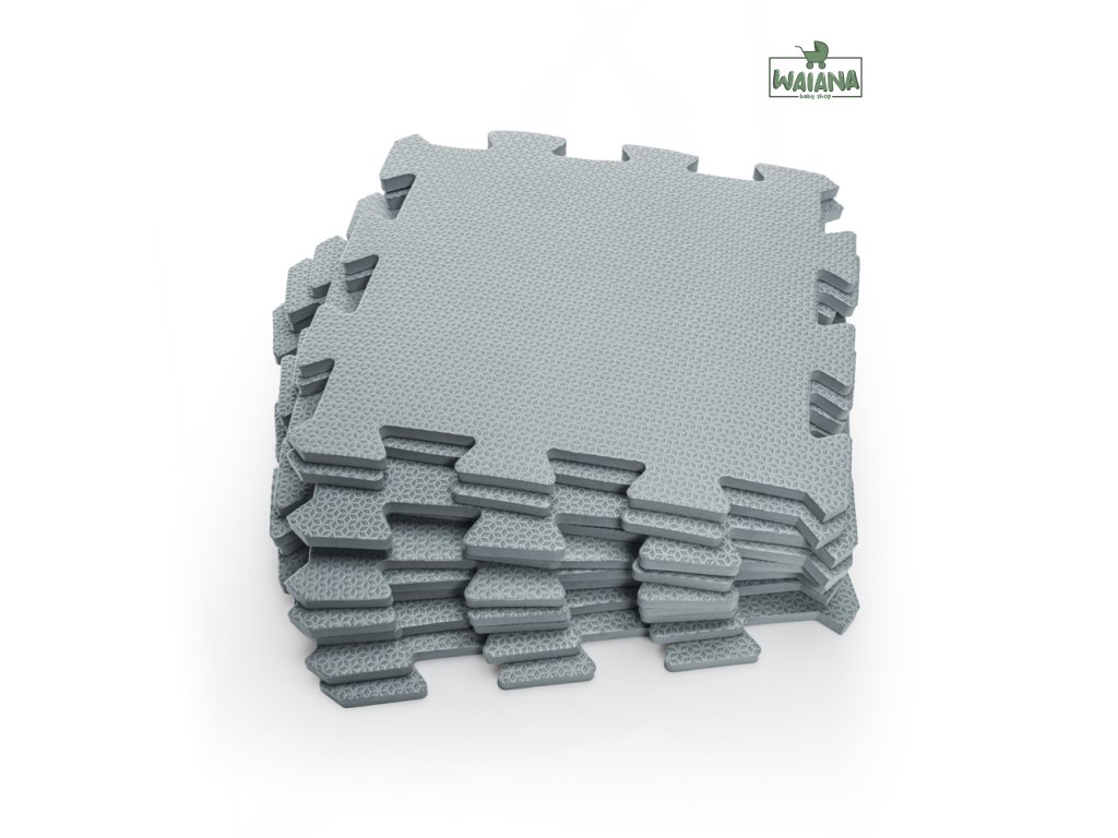 Jednotlivé dlaždice 30 × 30 cm (9 ks) do seba perfektne zapadajú. Podložka je vhodná pre deti od narodenia, vyrobená z nezávadného a príjemného materiálu.