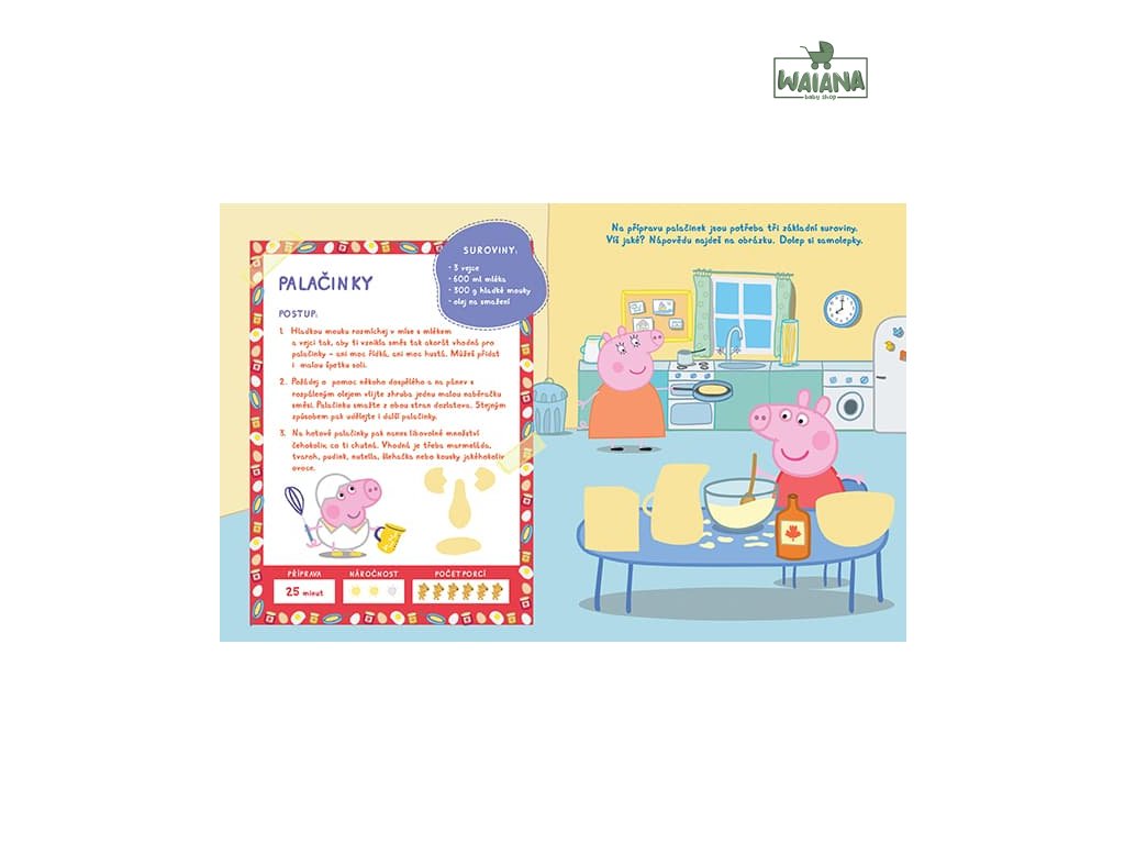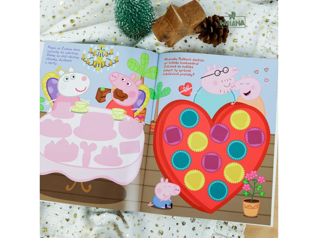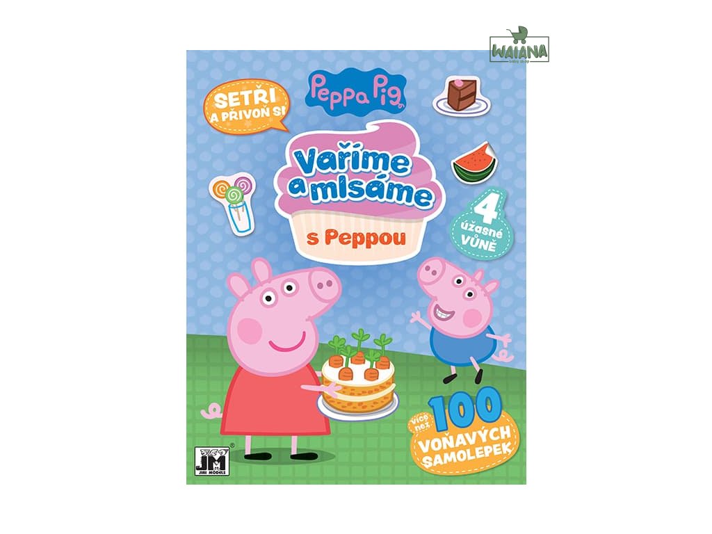 Peppa Pig - Vaříme a mlsáme s PeppouPrasiatko Peppa Pig vás pozýva do svojej kuchyne. S touto samolepkovou knižkou sa detičky zabavia pri tvorení so samolepkami spolu s prasiatkom Peppa Pig. Zošit obsahuje aj recepty na prípravu jednoduchých jedál, ktoré môžete následne s deťmi spoločne vyskúšať.Obsahuje voňavé samolepky a recepty.Obsahuje 16 strán aktivít a receptov a viac než 100 samolepiek so 4 rôznymi vôňami.