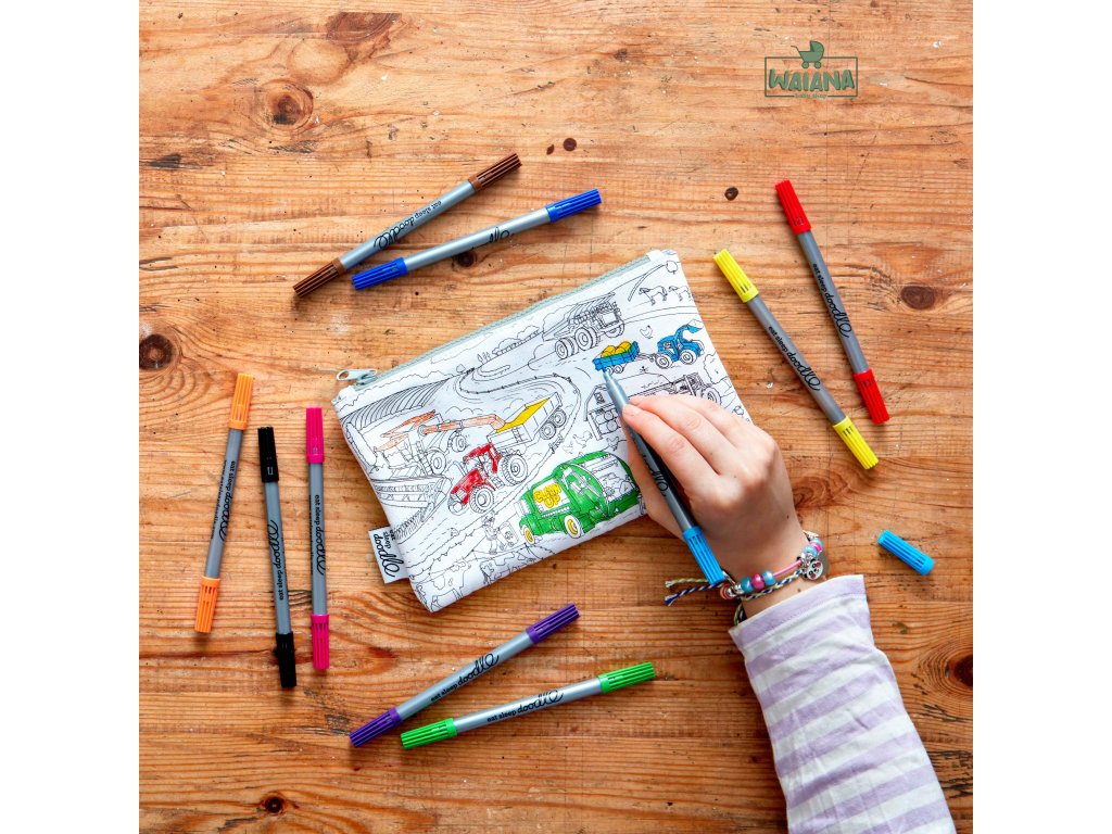 Peračník Vymaľuj a oper Working wheelsObohaťte svoje školské potreby o kreatívne farby!Peračník na vyfarbenie Working wheels je ideálny darček pre deti, ktoré milujú autá, traktory a ďalšie dopravné prostriedky. Tento kreatívny peračník prichádza so setom desiatich umývateľných fixiek, ktoré umožňujú deťom vyfarbiť rôzne vozidlá, ako sú bagre, autobusy, športové autá a ďalšie. Na druhej strane peračníka nájdu priestor na navrhnutie vlastného vozidla! Keď je čas na nové dobrodružstvo, jednoducho peračník hodíte do práčky a atrament zmizne, pripravený na ďalšie farbenie. Tento peračník je skvelý darček pre deti na narodeniny, Vianoce, oslavy alebo ako originálny darček na začiatok školy.
