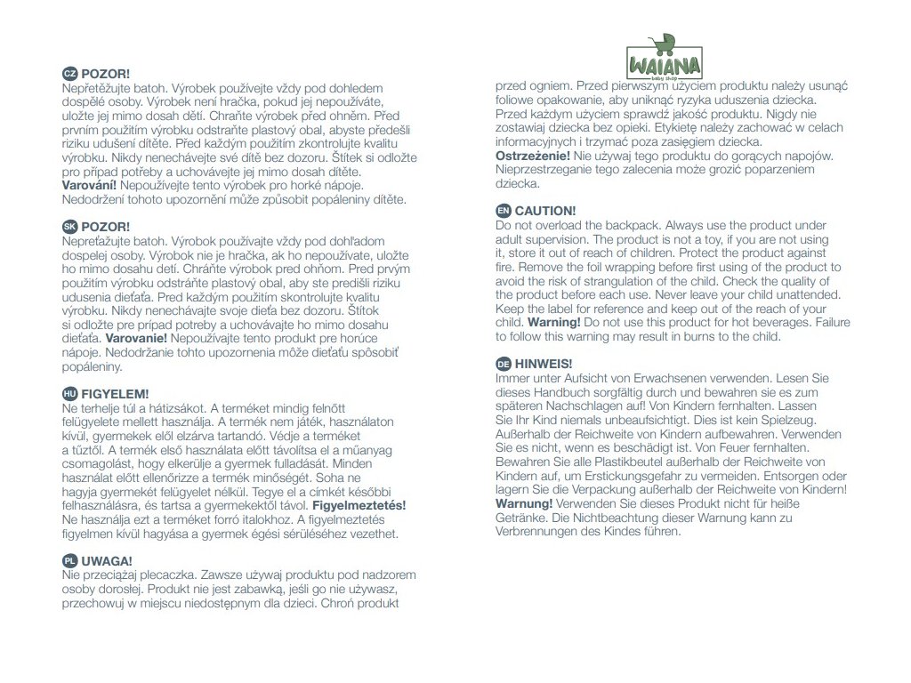Batôžtek BACKIE je určený pre aktívne deti. Jeho veľkosť je prispôsobená postave malého dieťaťa, navyše má bezpečnostný prvok v podobe stabilizačného popruhu s prackou, ktorý zabraňuje skotúľaniu batohu z ramien.