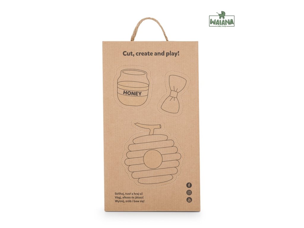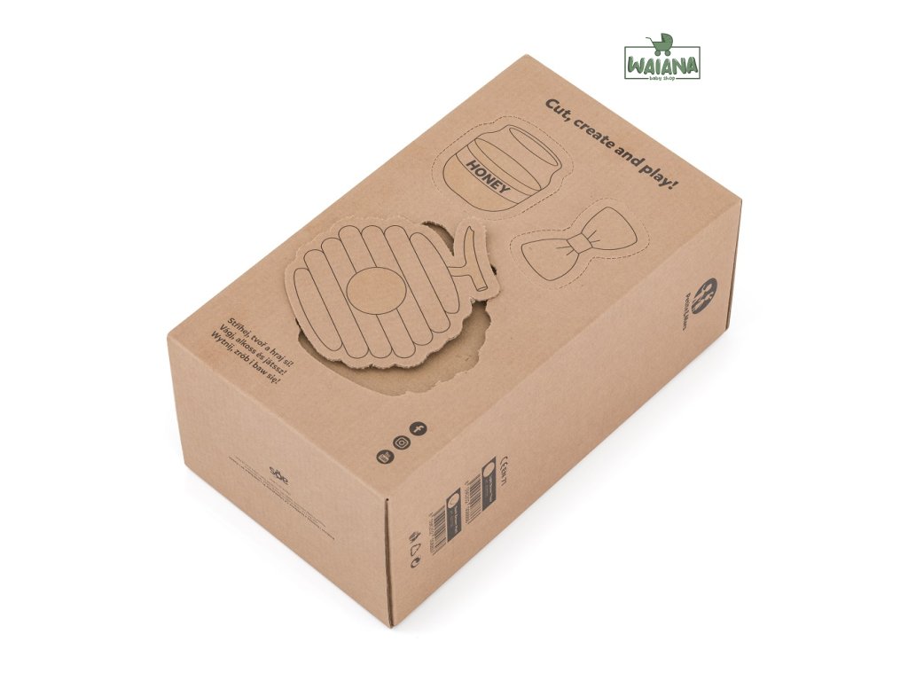 Naše plyšové zvieratká sú balené v krásnych ekologických krabičkách, ktoré majú zaujímavé využitie. Hracie doplnky sú vytlačené na zadnej strane každej krabičky a vďaka perforácii sa dajú ľahko vystrihnúť. Krabičku možno použiť aj ako domček pre plyšových medvedíkov.
