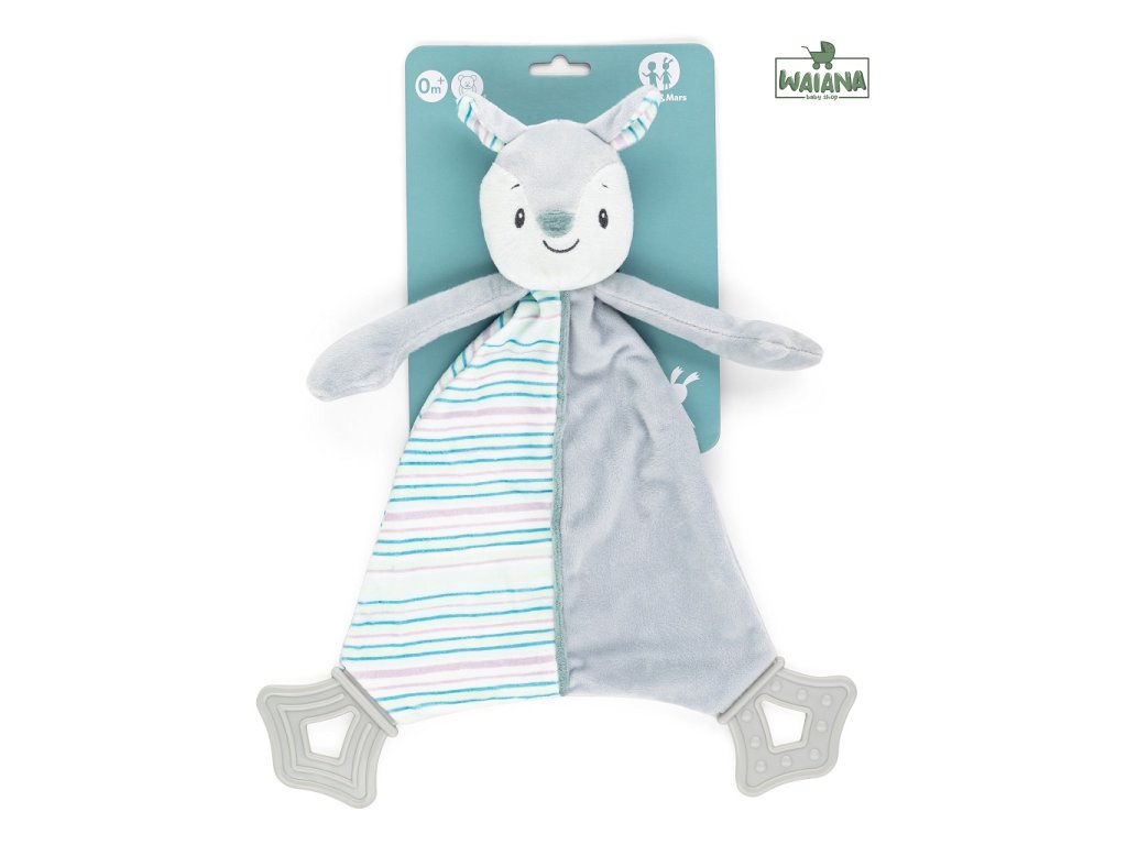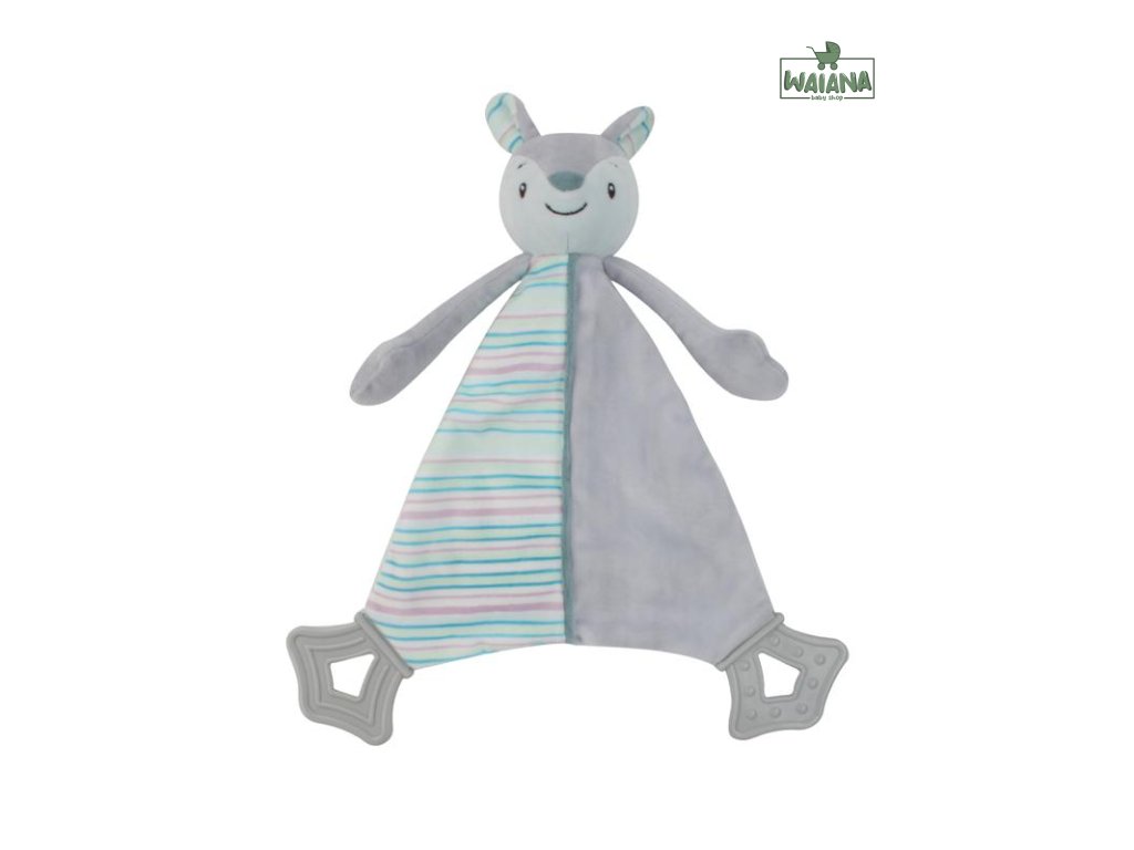 Plyšový maznáčik, ktorý vďaka zabudovávanej hryzačke pomáha pri prerezávaní prvých zúbkov. Veľkosť je ideálna pre malé detské ručičky. Hračka je vyrobená z na dotyk príjemného materiálu.