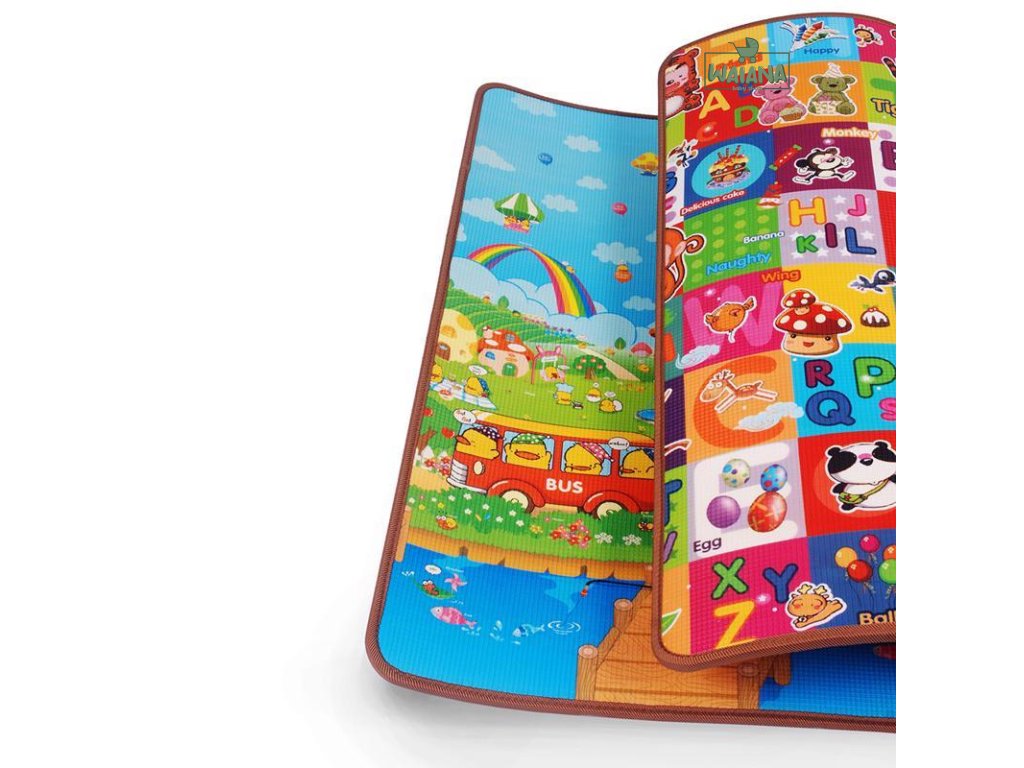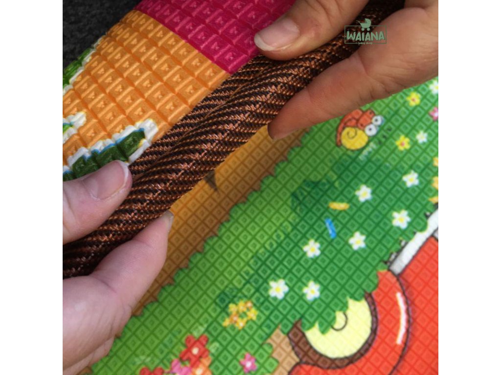 Podložka na hranie má obojstrannú potlač s veselými motívmi, protišmykovú úpravu na povrchu, skvele izoluje a odhlučňuje, je vodeodolná, jemná na povrchu, elastická, avšak tvarovo stabilná, skladná a predovšetkým poskytuje deťom bezpečie pri hre.