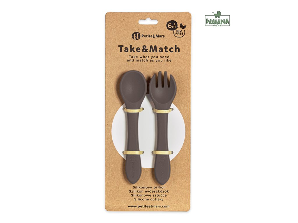 PETITE&MARS Príbor silikónový Take&Match Bitter Cocoa 6m+