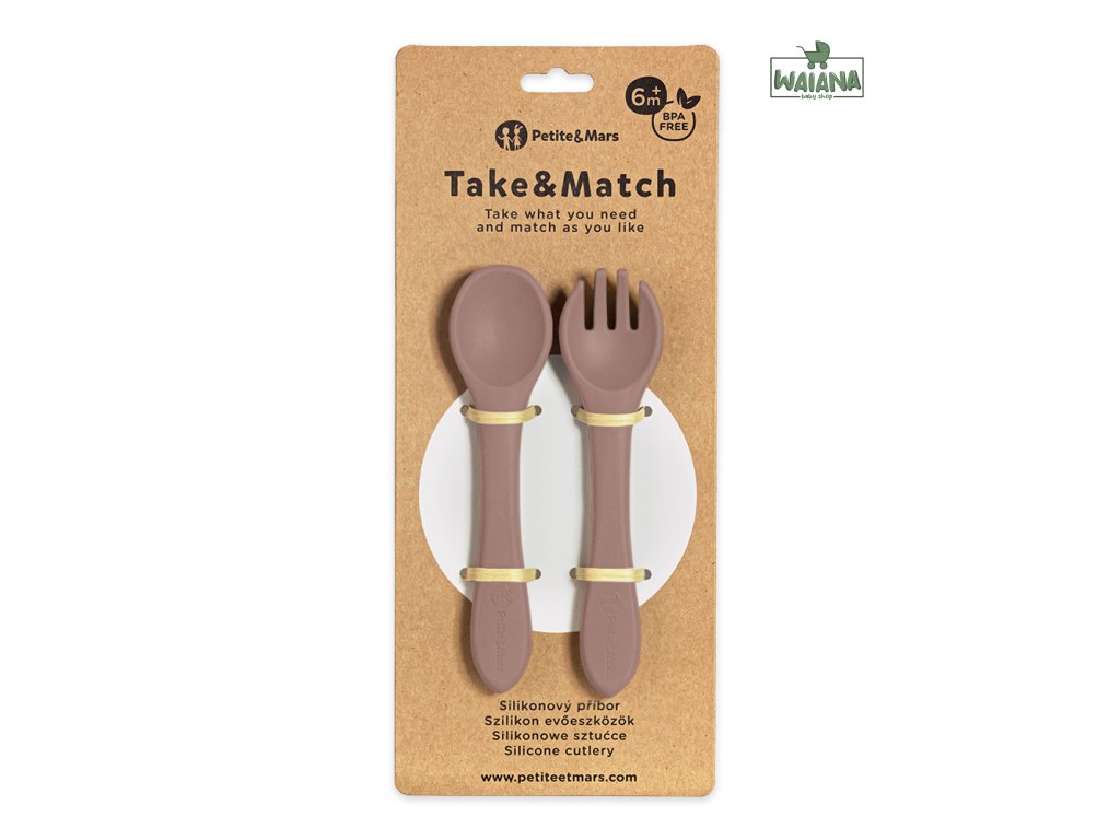 PETITE&MARS Príbor silikónový Take&Match Velvet Latte 6m+