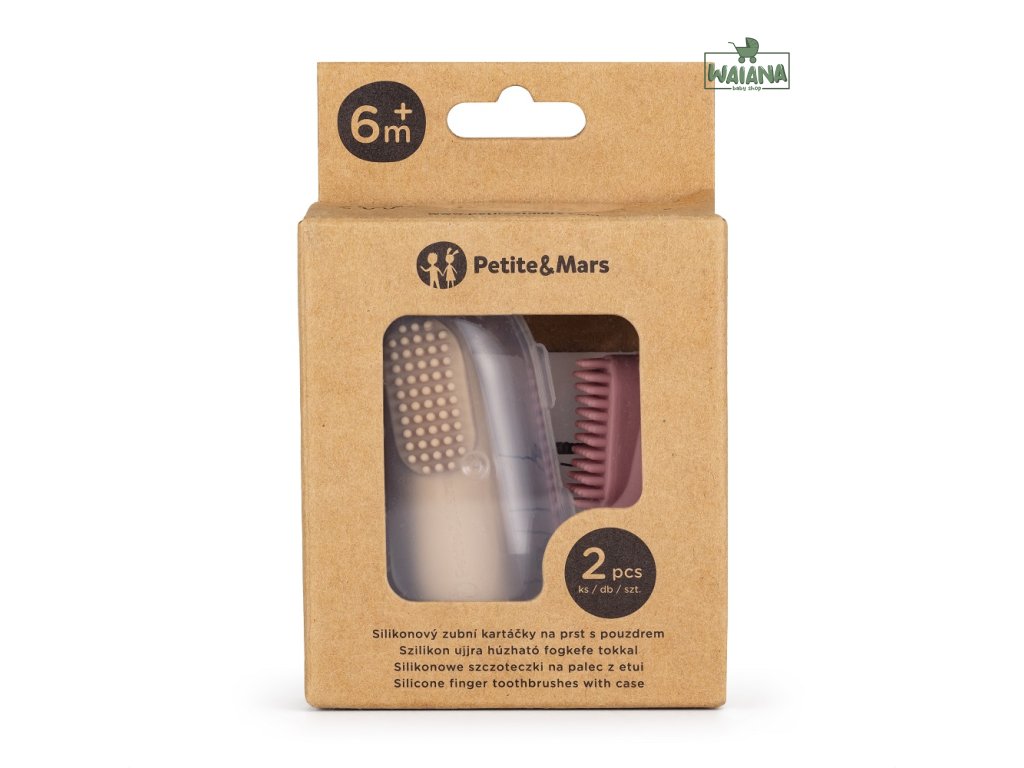 PETITE&MARS Sada silikónových zubných kefiek na prst Rose&Sand 2 ks 0m+