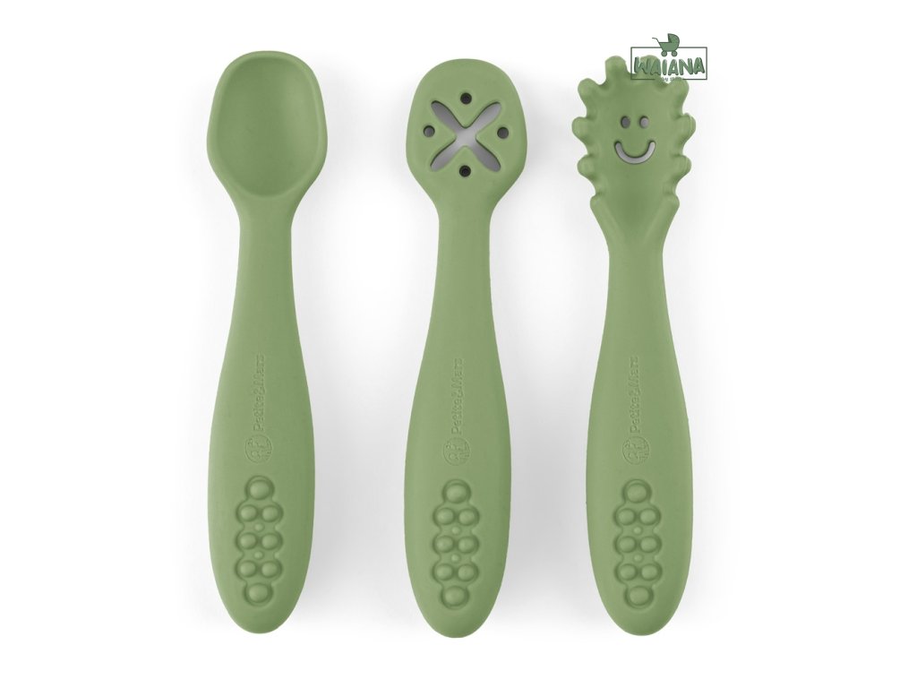 PETITE&MARS Set 3 ks silikónových tréningových lyžičiek Take&Match Sweet Pea 6m+