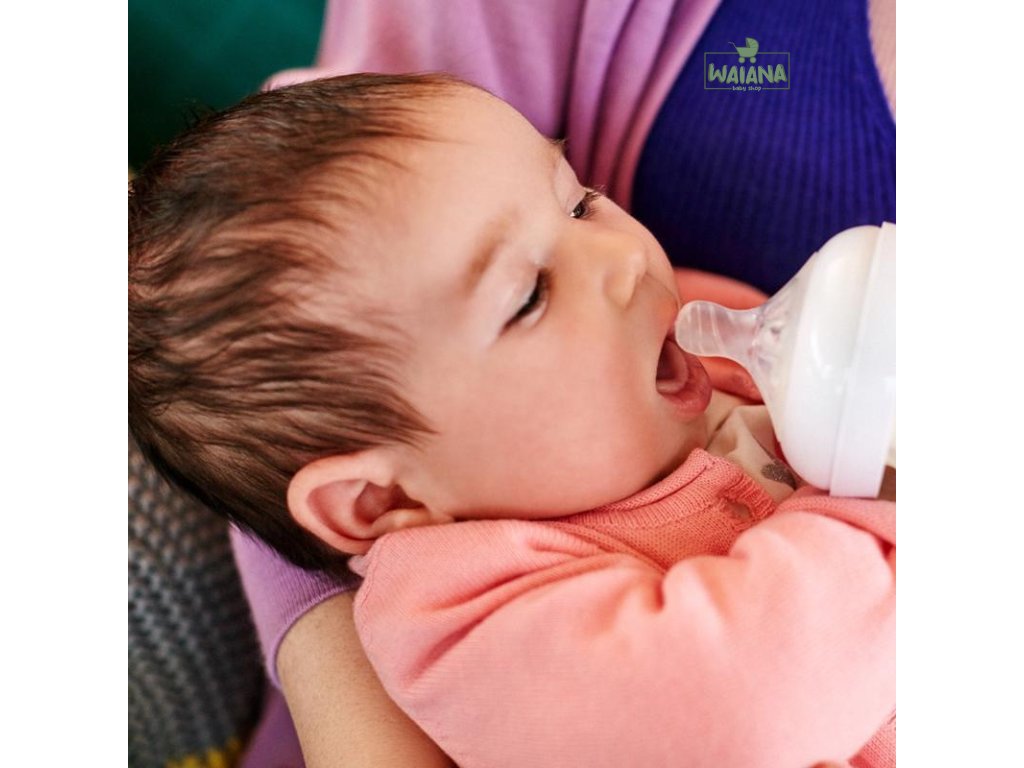 - Prirodzené prisatie vďaka širokému cumlíku v tvare prsníka. Široký cumlík v tvare prsníka podporuje prirodzené prisatie podobne ako pri dojčení. Jednoduchá kombinácia dojčenia s kŕmením z fľaše.