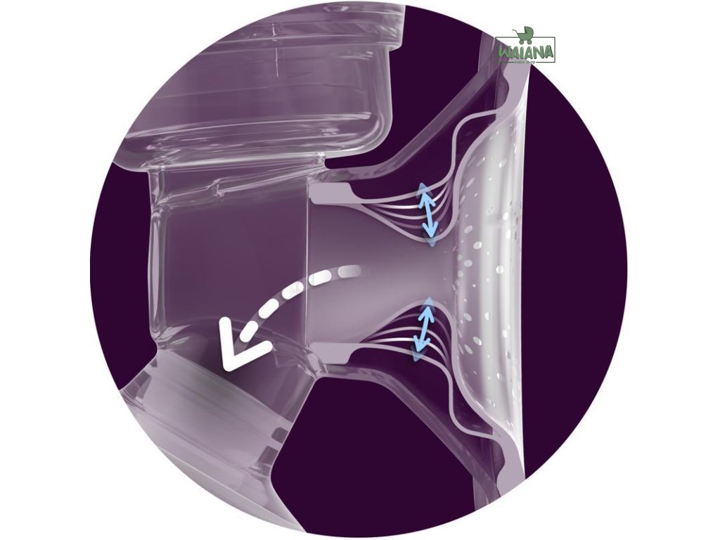 Inšpirované bábätkom, praktické pre mamičku. Technológia prirodzeného pohybu. Efektívne kombinuje vákuum a stimuláciu bradaviek pre rýchlejší tok mlieka. Inšpirované jedinečnou schopnosťou bábätka sať a masírovať bradavku, technológia prirodzeného pohybu prirodzene stimuluje tok mlieka.