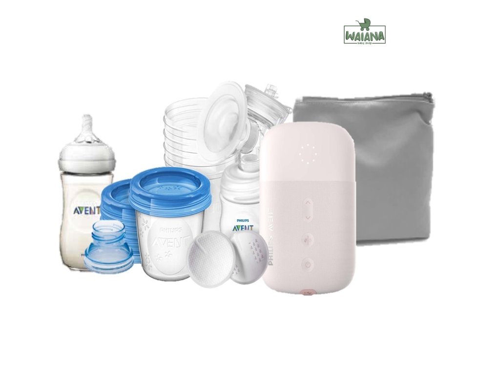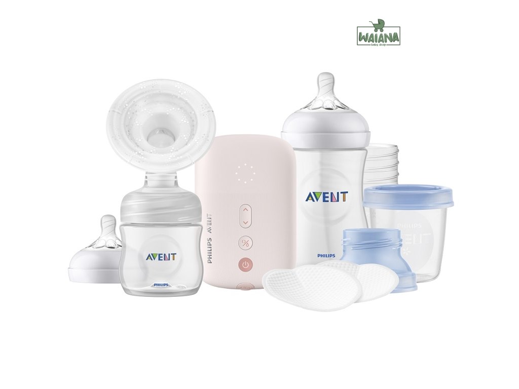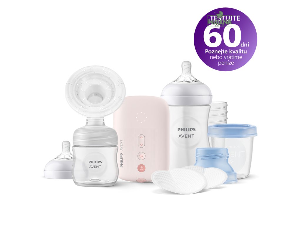 Výhodné balenie elektrickej odsávačky materského mlieka. Sada obsahuje všetky výrobky, ktoré potrebujete na odsávanie, uskladnenie a kŕmenie materského mlieka.