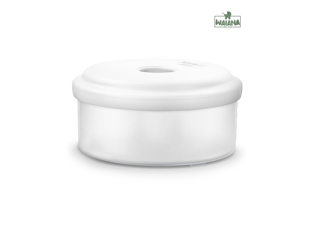 - Pred použitím odkladaciu nádobu dôkladne vyčistite a potom vysterilizujte sterilizátorom Philips Avent, alebo nádobu vložte na 5 minút do vriacej vody. Zaistíte tým hygienu nádob. Pri použití vriacej vody na sterilizáciu odkladacej nádoby zabezpečte, aby bol v tejto nádobe dostatok vody, a aby sa odkladacia nádoba nedotýkala nádoby príliš dlho, aby nedošlo k tepelnej deformácii.