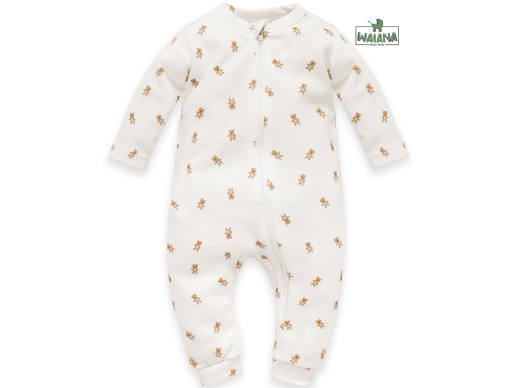 PINOKIO Overal na zips bez nožičiek Lovely Day uni béžová Medvedík bavlna veľ.56