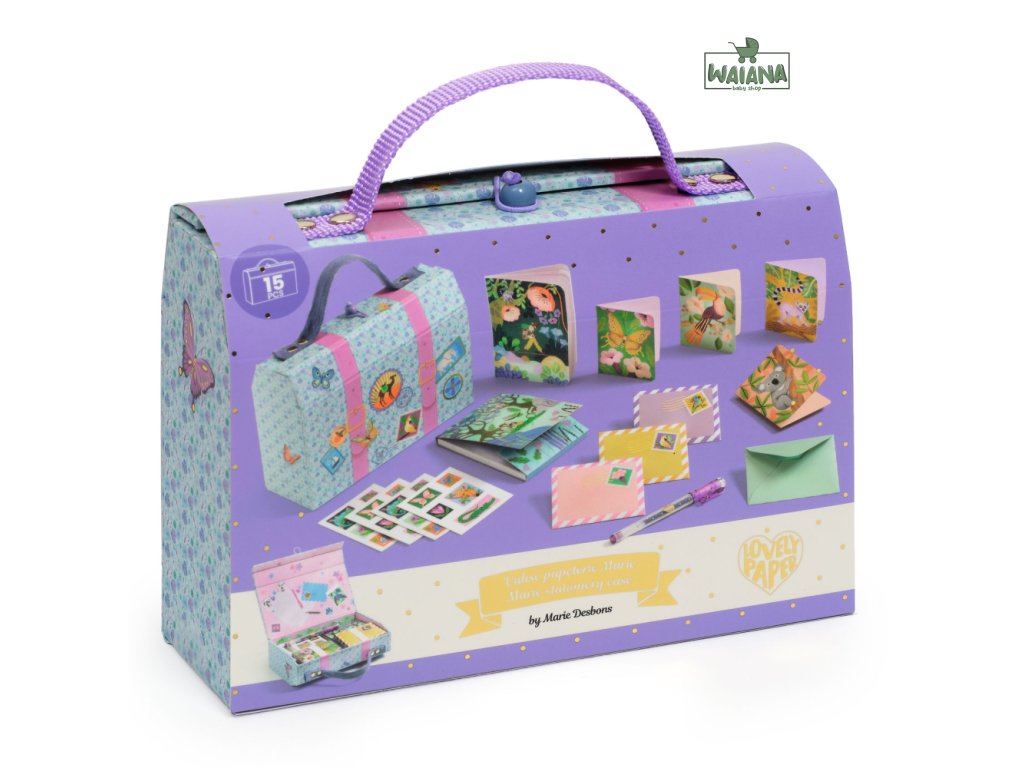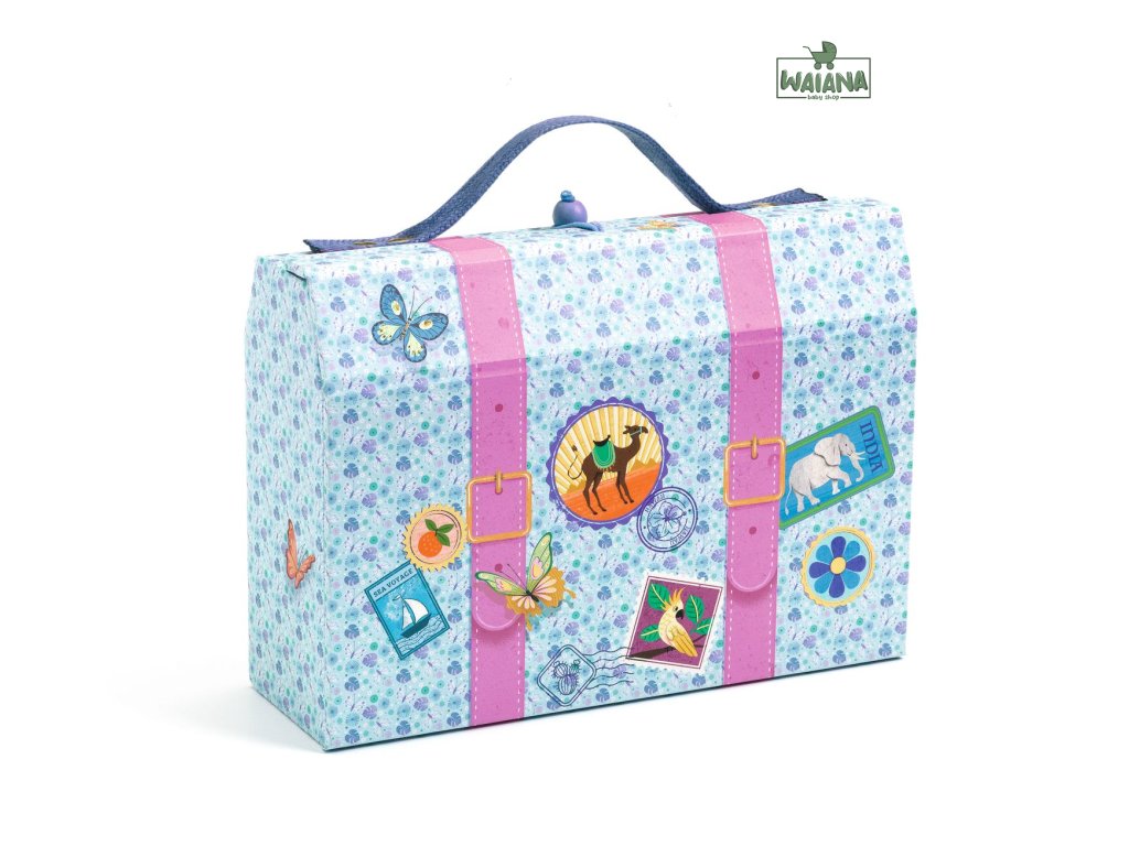 Objavte kufríkové puzdro Marie od DJECO z kolekcie LOVELY PAPER. Tento dizajnový a ľahko prenosný „kufrík“ je vyrobený z pevného kartónu a disponuje jedinečným zapínaním s drevenou guľôčkou a gumičkou.
