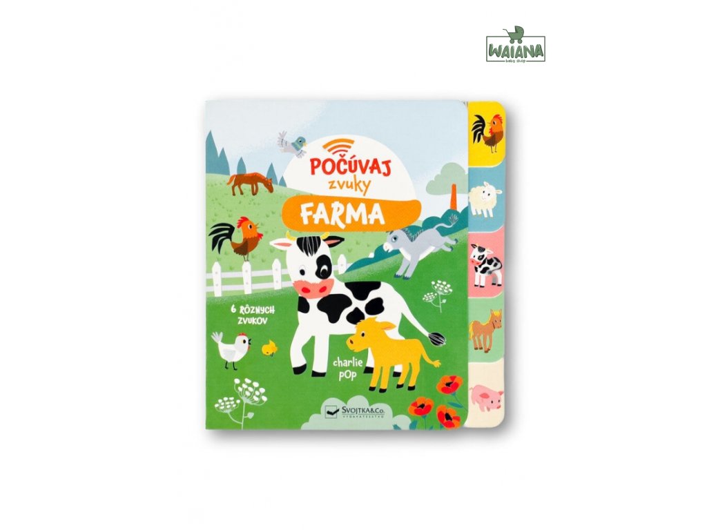 Počúvaj zvuky - FarmaPreskúmaj farmu s touto zvukovou knižkou. Prehliadni si scenérie, stlač tlačidlo a započúvaj sa do zvukov zvierat z farmy.