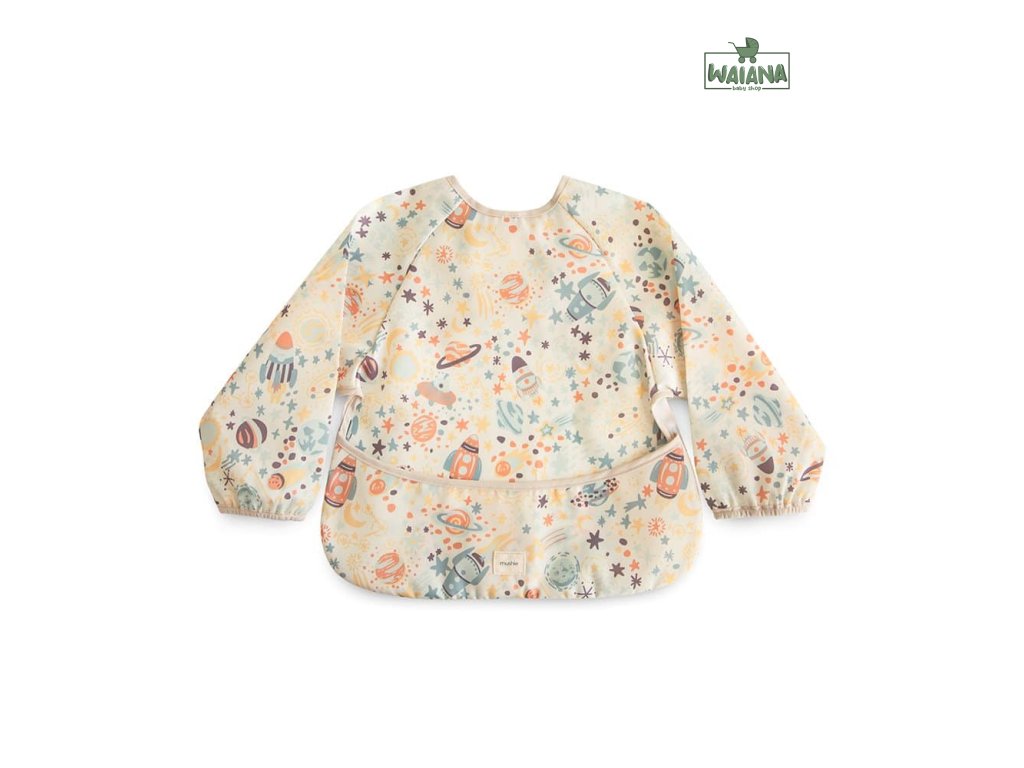 Podbradník s dlhým rukávom od značky Mushie pre bezproblémové jedenie!