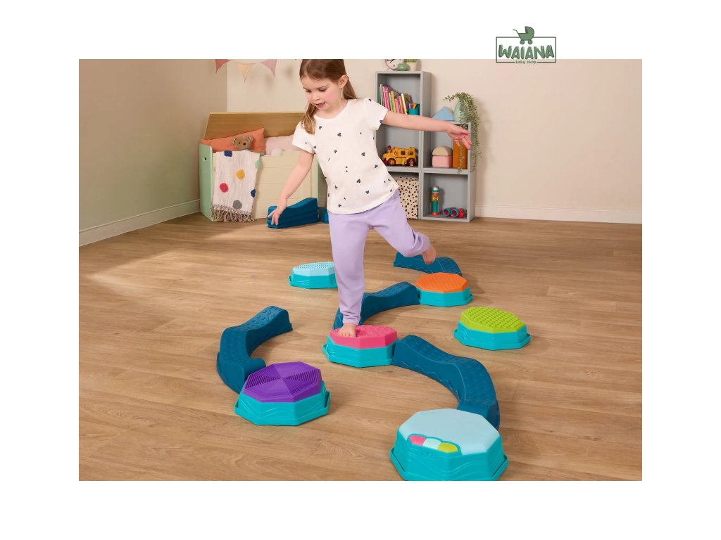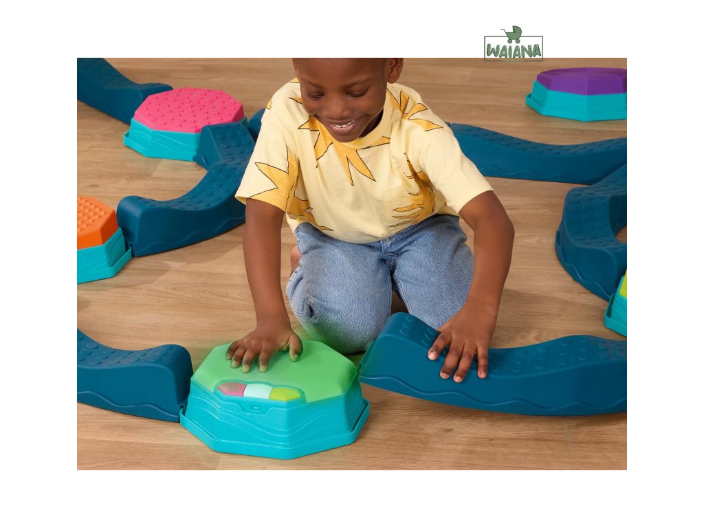 Variabilná prekážková dráha Balance & Groove poskytne vašim deťom zábavu a zároveň pomáha rozvíjať ich rovnováhu, koordináciu a hrubú motoriku. Súčasťou sady je špeciálny hudobný stupienok s LED svetelnými efektmi, ktorý dodáva celej dráhe magický efekt a motivuje deti skúšať ďalšie a ďalšie herné varianty. Sada ponúka mnoho kombinácií a spôsobov použitia, takže zakaždým môžete vymyslieť nový, zaujímavý variant. Každý okrúhly stupienok navyše ponúka inú textúru na hornej farebnej strane.