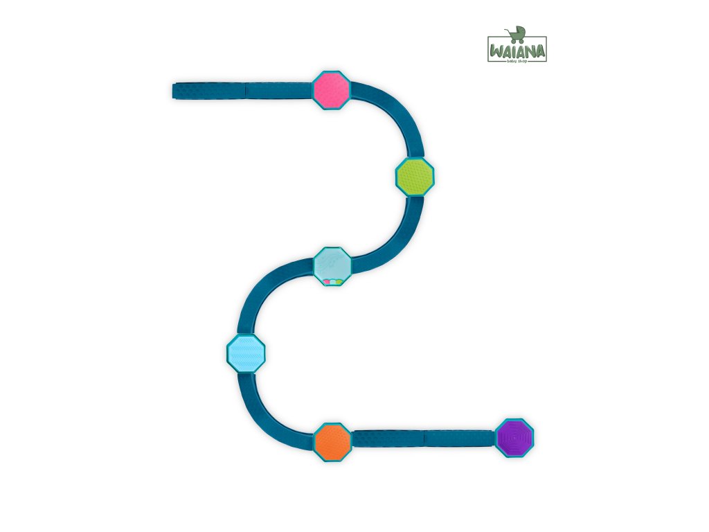 - Modulárna balančná dráha – 4 vlnité prekážky, 4 rovné prekážky a 5 senzorických stupienkov umožňujú nekonečné kombinácie a variabilné stavby