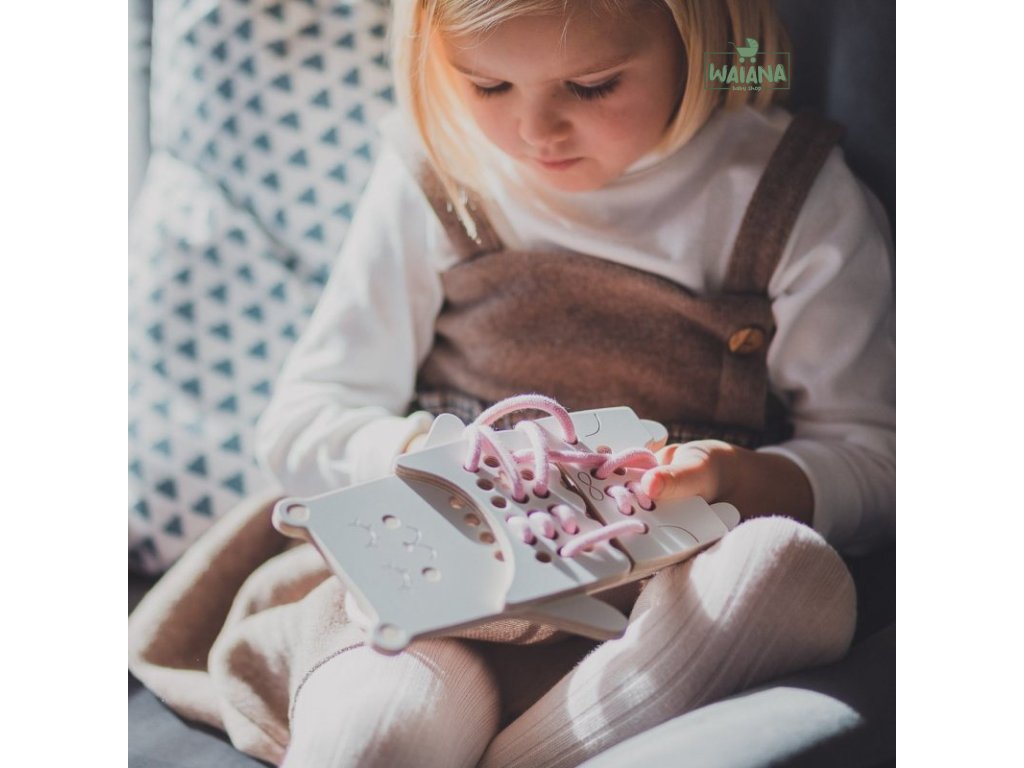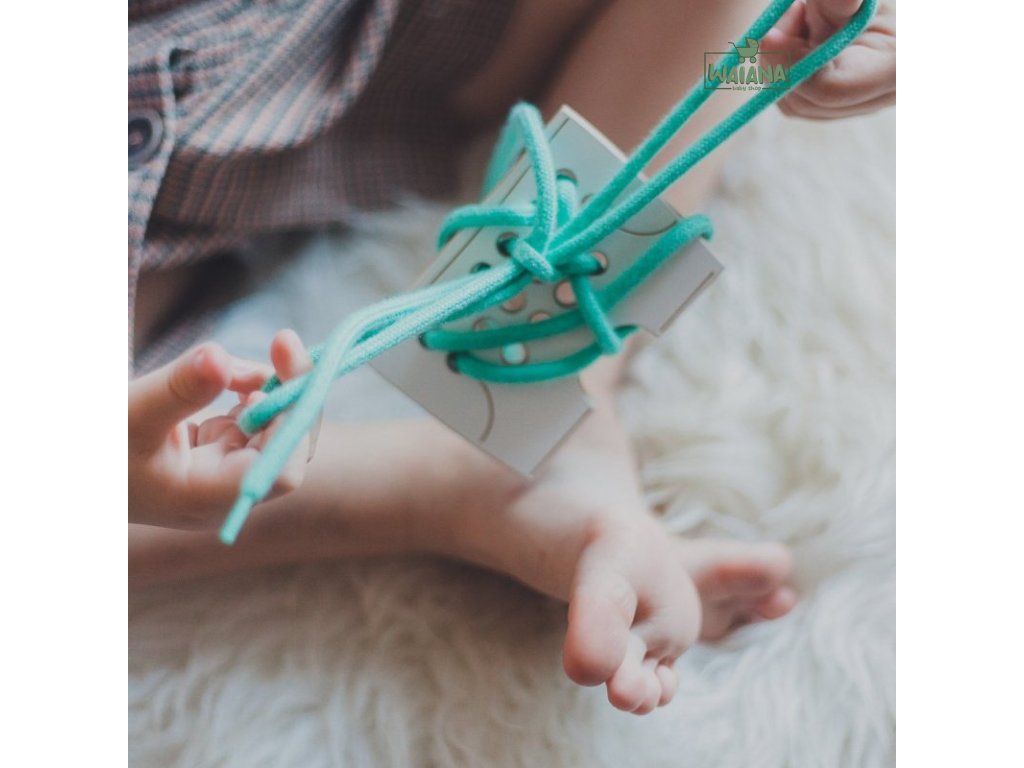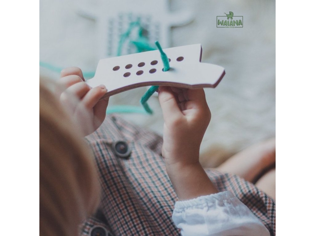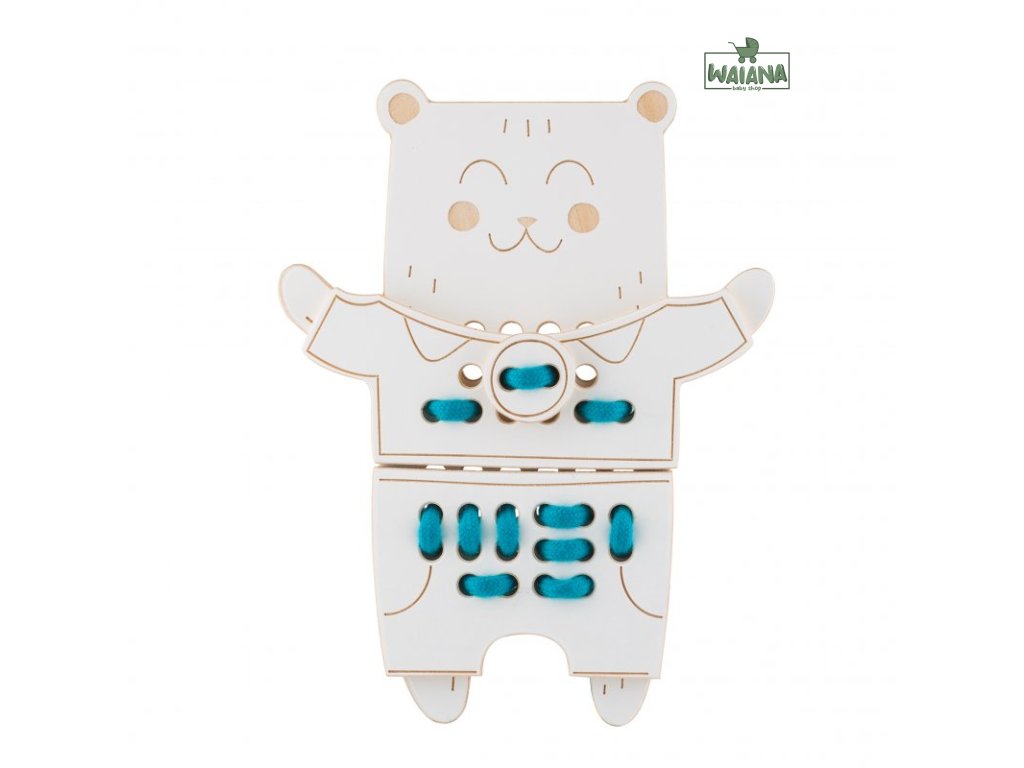 Drevená prevliekacia hračka rozvíjajúca kreativitu a predstavivosť. Prezliekanie zvieratiek šnúrkami predstavuje nielen radostný spôsob zábavy, ale zároveň napomáha v príprave detí na písanie v škole. Rozvíja manuálnu zručnosť a jemnú motoriku. Tréning koordinácia oko-ruka podporuje jazykové zručnosti a vytváranie nových nervových spojení v mozgu.