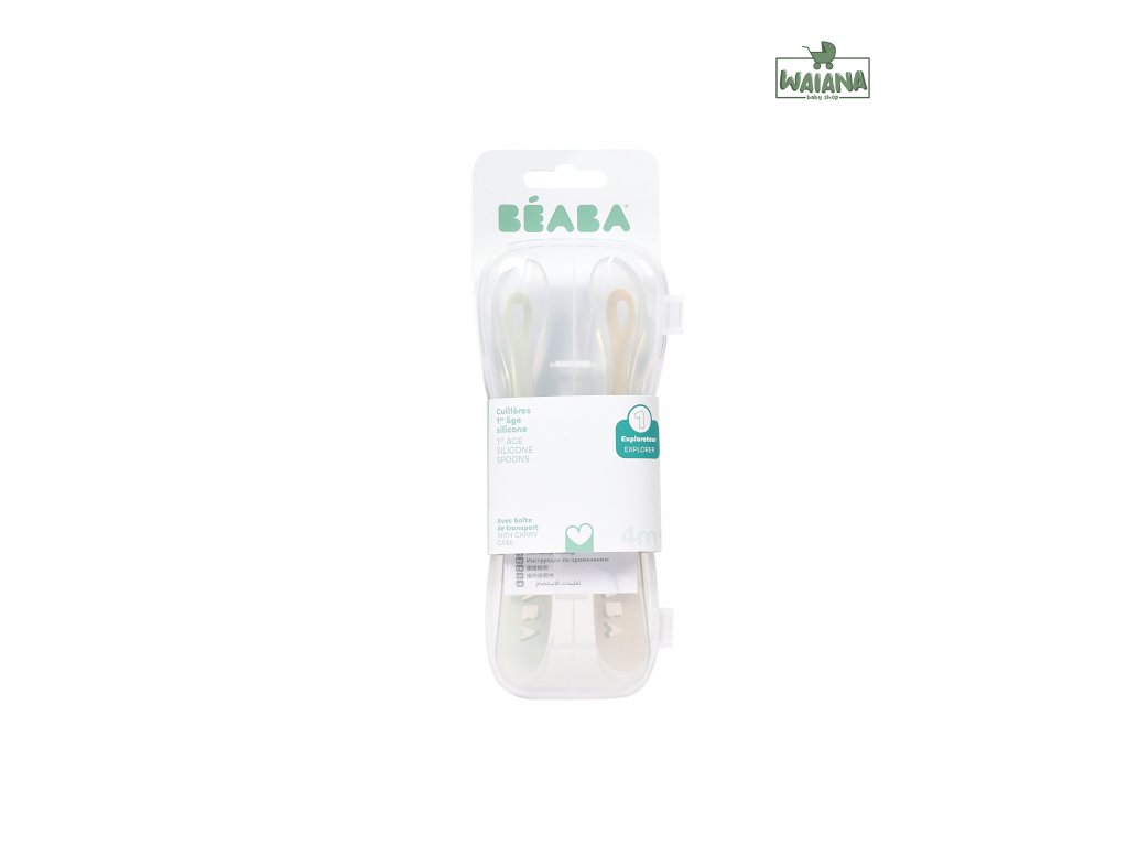 Silikónové lyžičky Beaba pre najmenších sú šetrné k citlivým detským ďasnám a navrhnuté pre hladký prechod z cumlíka na lyžičku. Dlhá rukoväť uľahčuje rodičovi naberanie z misky aj pohára bez zašpinenia rúk. Praktické puzdro umožňuje hygienické prenášanie lyžičiek napr. v prebaľovacej taške.