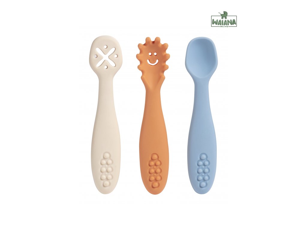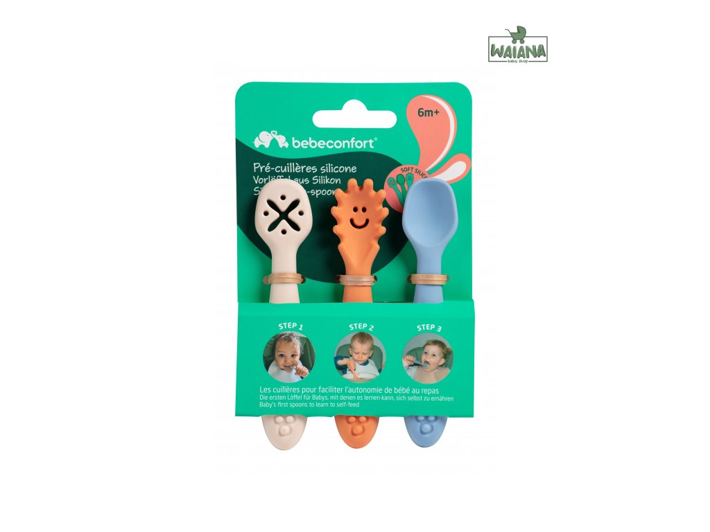 Bezpečné, praktické a hravé lyžičky Bebeconfort pomôžu vášmu dieťaťu s prvými krôčikmi k samostatnému stolovaniu! Súprava troch ergonomicky tvarovaných lyžičiek z mäkkého potravinárskeho silikónu je šetrná k citlivým ďasnám a navrhnutá presne pre malé detské ručičky.