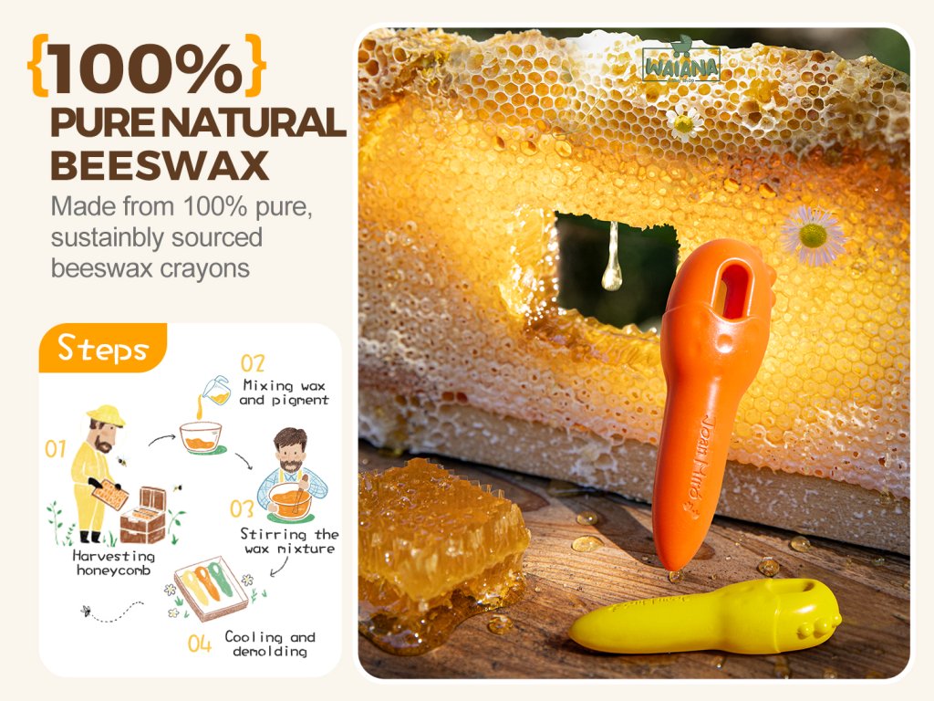 Prvé voskovky z včelieho vosku 12 ksPrírodné voskovky, ktoré milujú deti aj rodičiaJar Melo voskovky z včelieho vosku sú stvorené pre malých umelcov s veľkou fantáziou. Bezpečné, nelámavé a voňavé – kreslia jemne a ľahko sa držia aj v detských ručičkách. Hravý tvar, pestré farby a 100 % prírodné zloženie robia z tvorenia čistú radosť.Prečo si ich vaše dieťa zamiluje?Vyrobené zo 100 % včelieho vosku a potravinárskych pigmentovJemné, ľahko umývateľné z pokožky aj oblečeniaErgonomický tvar vhodný pre deti od 18 mesiacovBezpečné, netoxické, s certifikáciami Balené v krásnej pevnej krabičke – ideálne aj ako darček