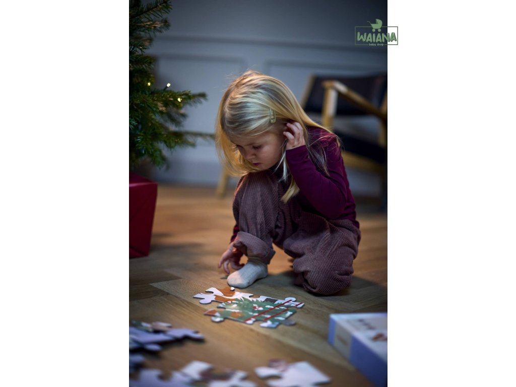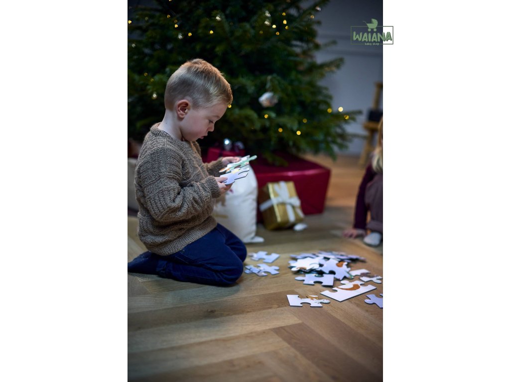 Toto sviatočné puzzle sa skladá z 30 veľkých dielikov, ktoré sa deťom ľahko držia a skladajú. Navrhnuté na posilnenie jemnej motoriky a podporu sústredenia, spája zábavu s učením. Puzzle je uložené v krásne navrhnutej krabičke, ktorá slúži aj ako dekoratívny doplnok do detskej izby, keď sa práve nepoužíva.