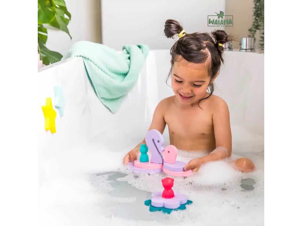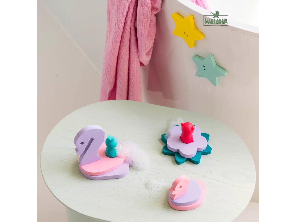 Kto by nemal rád rozprávky? Premeňte svoju vaňu na očarujúcu scénu s mamou labuťou, jej malým bábätkom, kvetmi, hviezdami a bábkami víl.