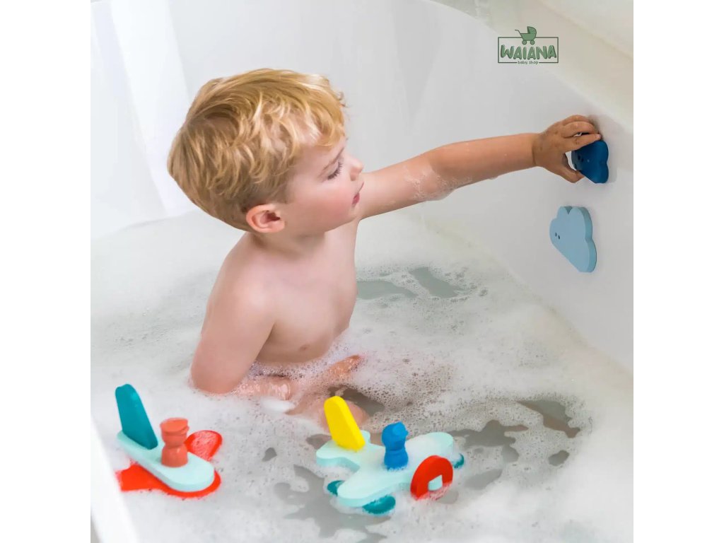 Stimulujte predstavivosť svojich detí, rozširujte ich slovnú zásobu a schopnosti tvorby zvukov a pomôžte im rozvíjať ich motorické zručnosti! Všetky tvary sú vyrobené z mäkkej EVA peny, ktorá ich drží nad vodou. Sada obsahuje aj 2 prstové bábky.