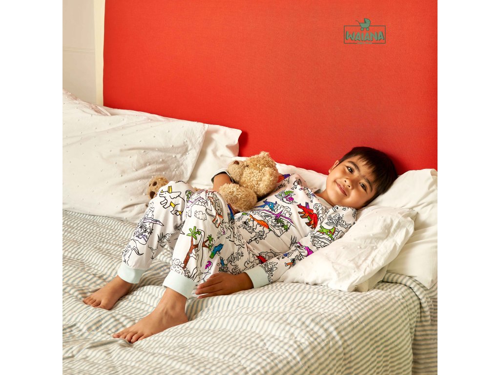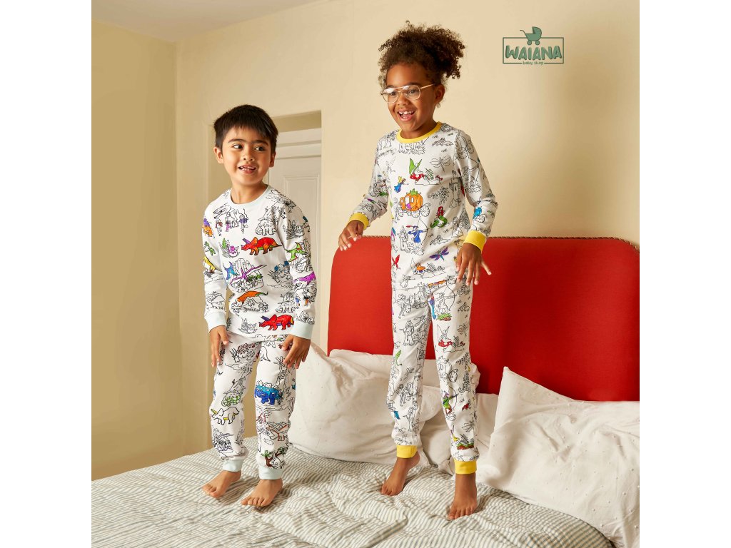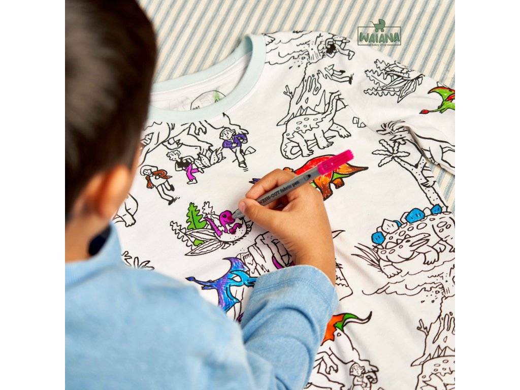 Pyžamo na vyfarbenie Dino Vymaľuj a oper 6-7 rokovVyfarbi si svoje pyžamoDoprajte svojim deťom zábavu a dobrodružstvo pri vyfarbovaní s naším pyžamom na vyfarbenie s dinosaurami! Tento set obsahuje pyžamo, ktoré si deti môžu vyfarbiť pomocou umývateľných fixiek. Na pyžame nájdete obľúbené dinosaury ako T-Rexa, Diplodocusa, Pterodactyla a Triceratopsa. Po praní sa atrament úplne vytráca a pyžamo je pripravené na ďalšie kreatívne dobrodružstvo. Pyžamo je vyrobené z jemnej bavlny a obsahuje elastický pás pre pohodlie. Dodáva sa aj s roztomilým bavlneným vreckom na pyžamo, ktoré je ideálne na cestovanie. Perfektný darček na narodeniny, Vianoce alebo na detské pyžamové párty.