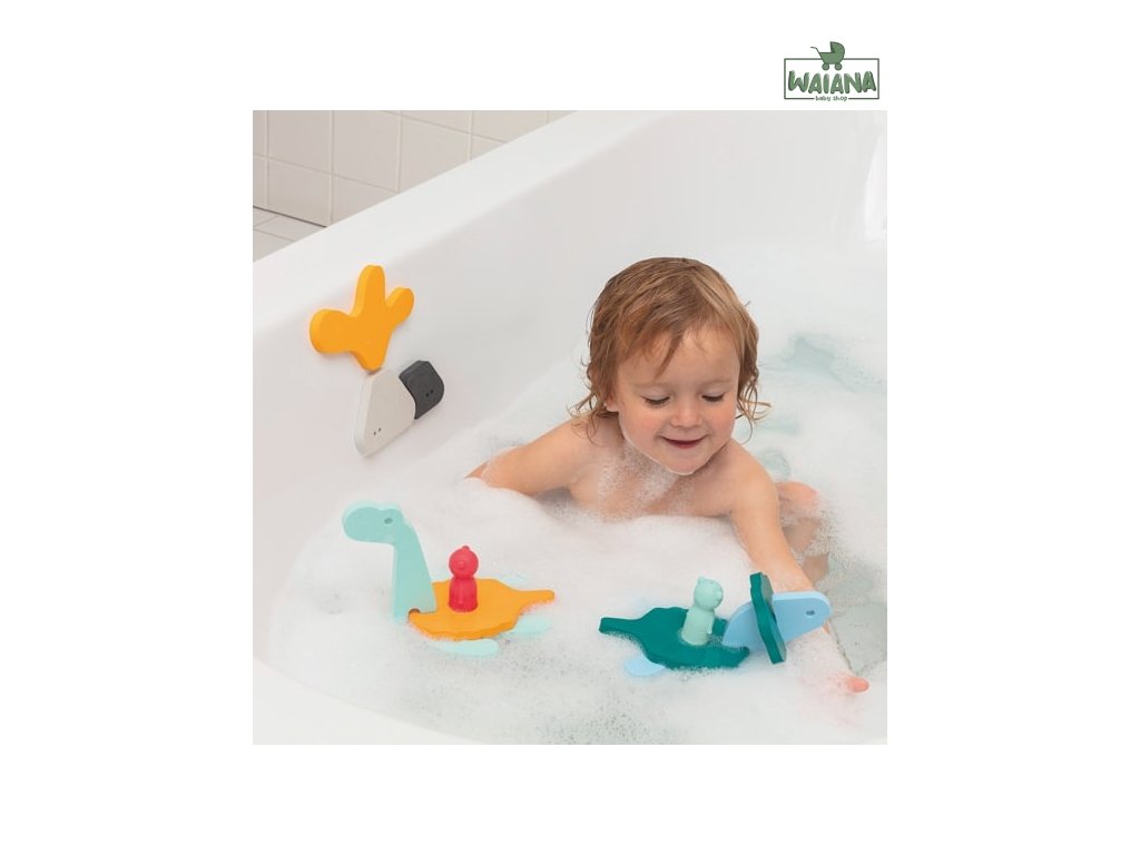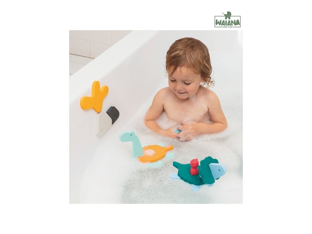 Puzzle do vody Dino svet, vyrobené z mäkkej peny EVA. Bez obsahu BPA, ftalátov a latexu, recyklovateľné.