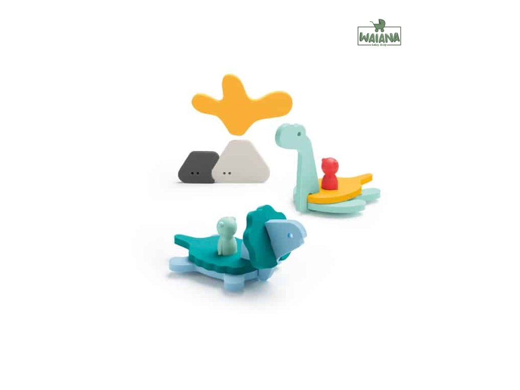 S puzzle Dino Svet môžete cestovať na chrbte vodných dinosaurov do prehistorickej krajiny s vybuchnutými sopkami, úchvatnou krajinou a gigantickými tvormi.